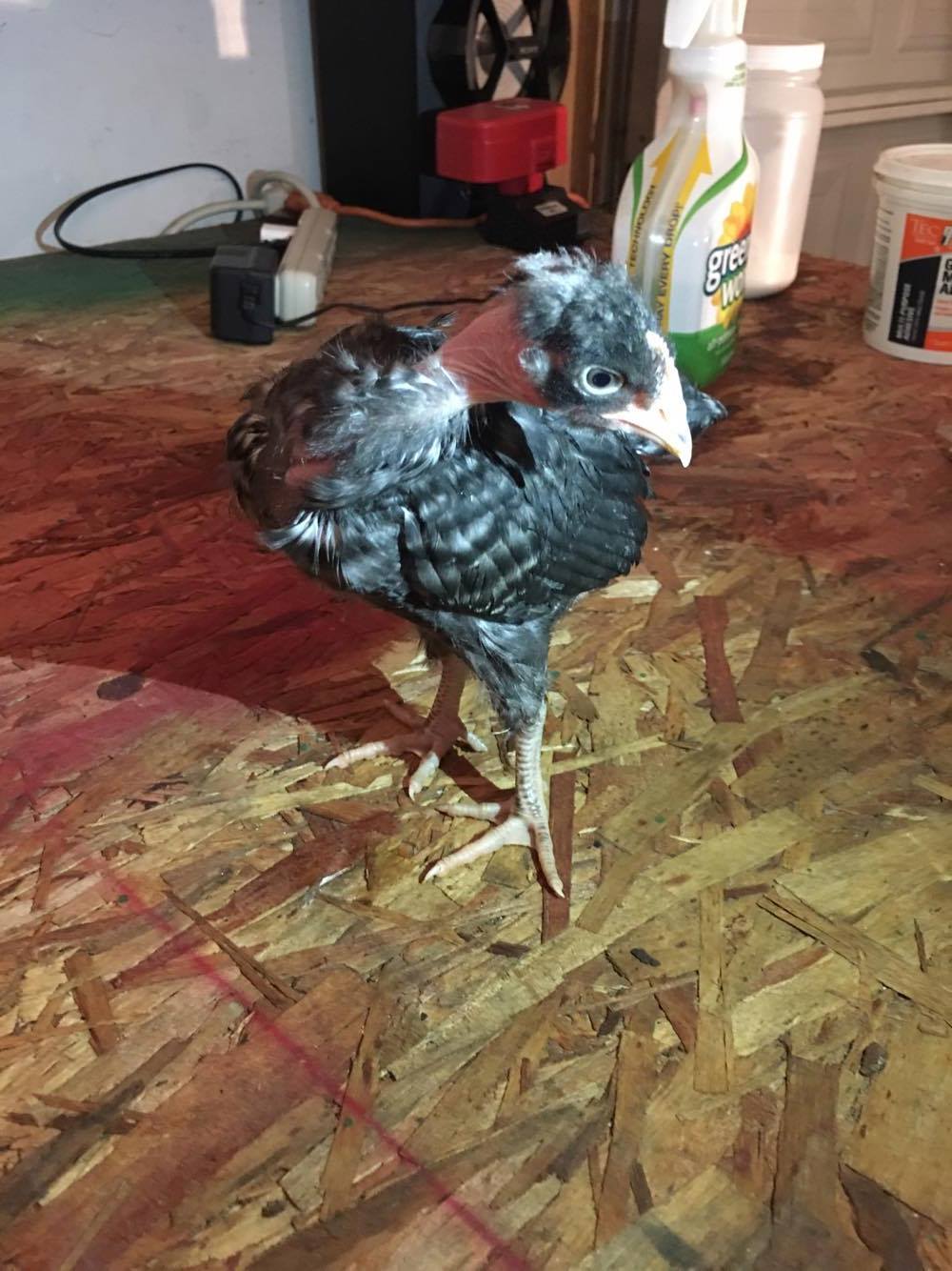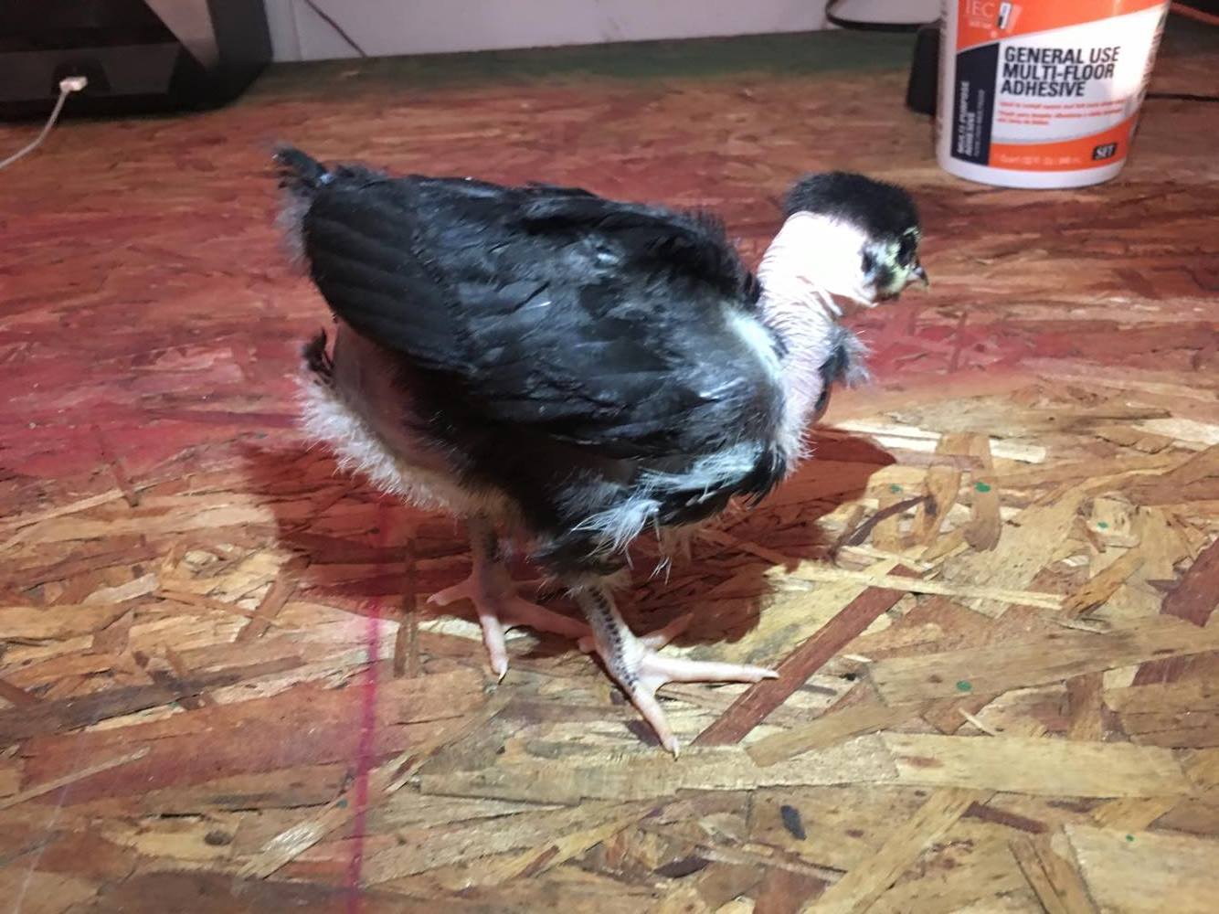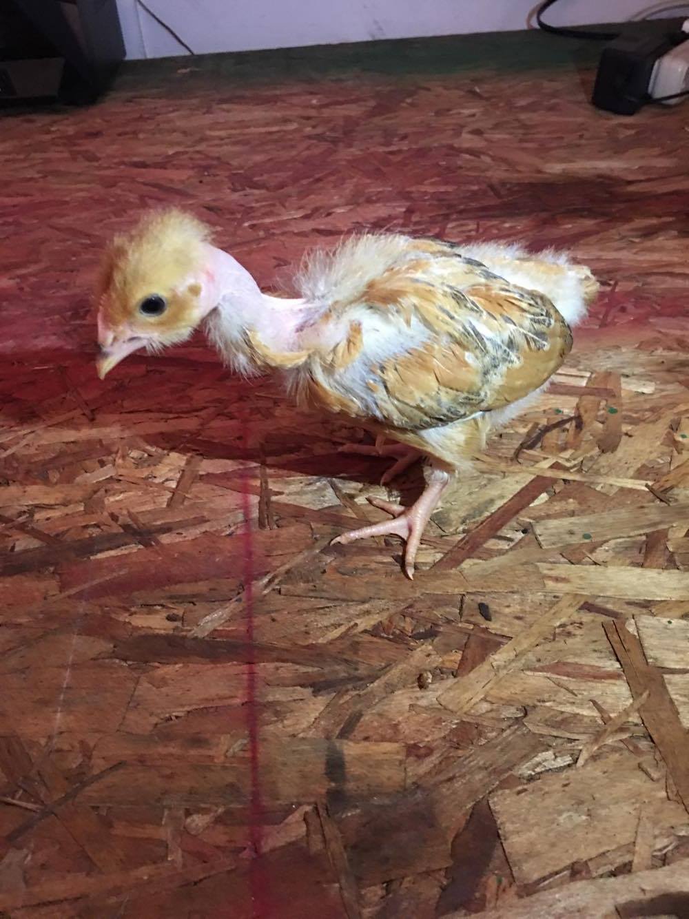 This guy is my BIG boy. He grew at the same rate as our sex-links. He's SUPER heavy. There's a feel-able difference when picking him up vs. other NNs from our brooder. It's a shame we decided to not weight them, since we couldn't follow parent lineage, it would've been nice just to see what his growth rate was;