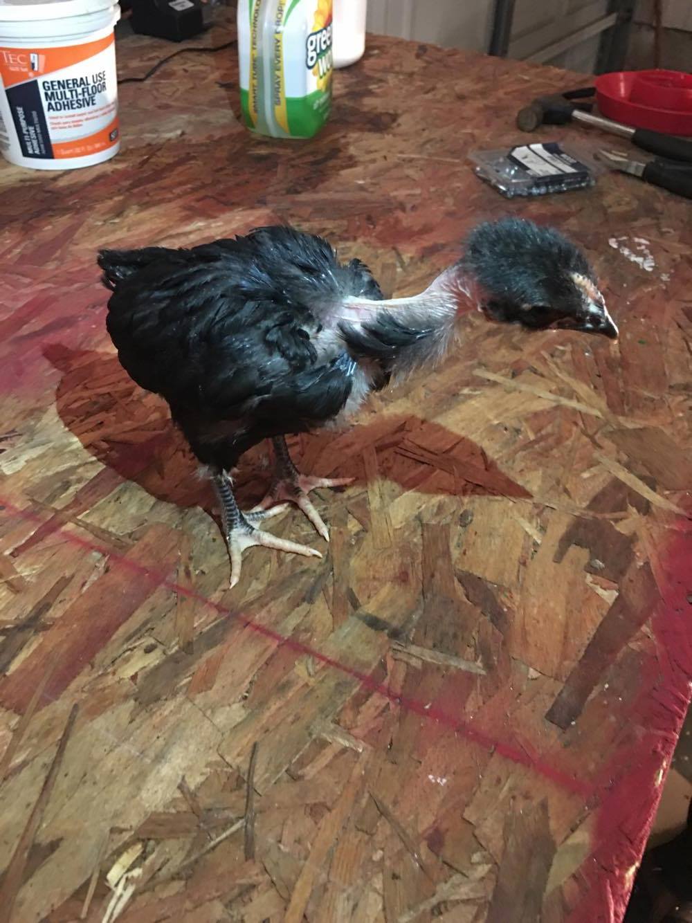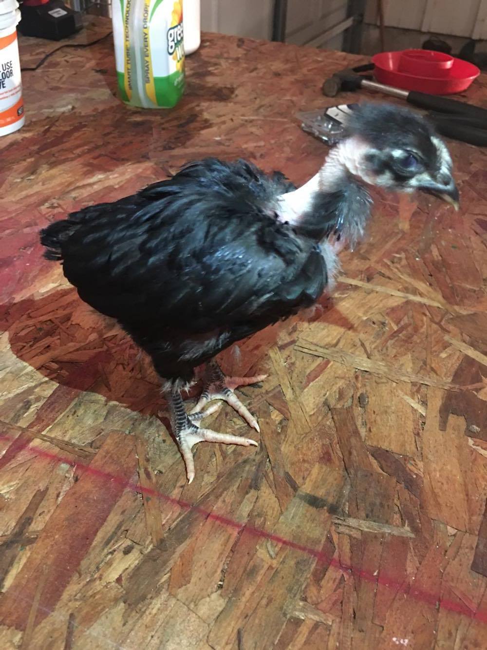 This girl is me smallest, she had the curled wing originally, but has since developed pretty normally. She is the least feathered of all 5, interestingly enough;