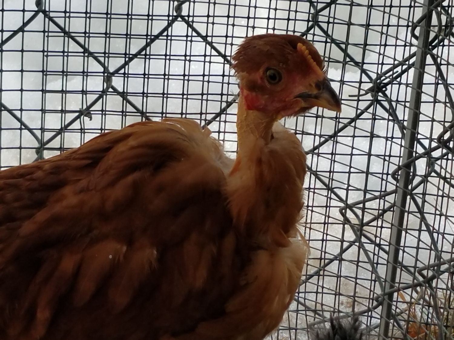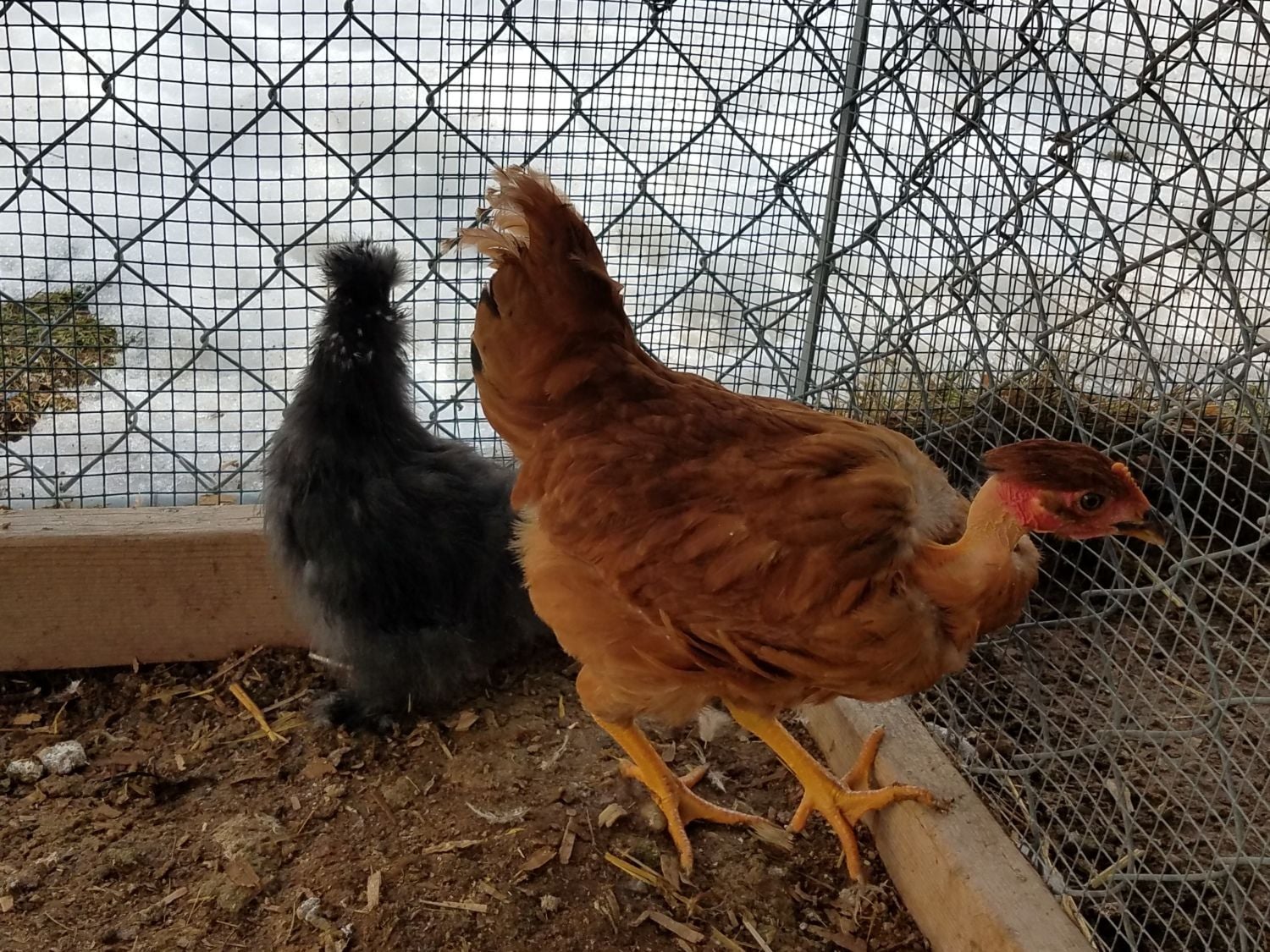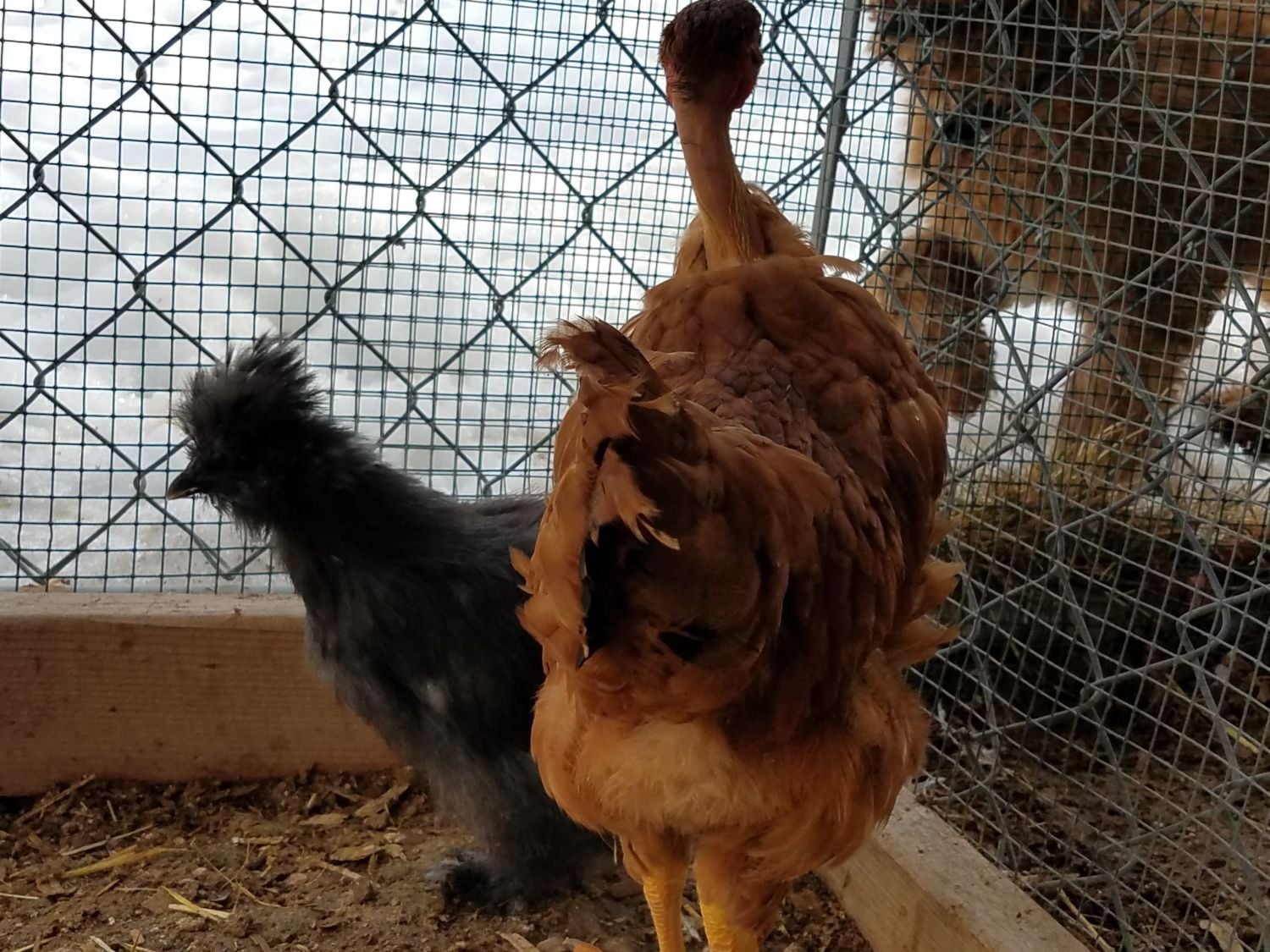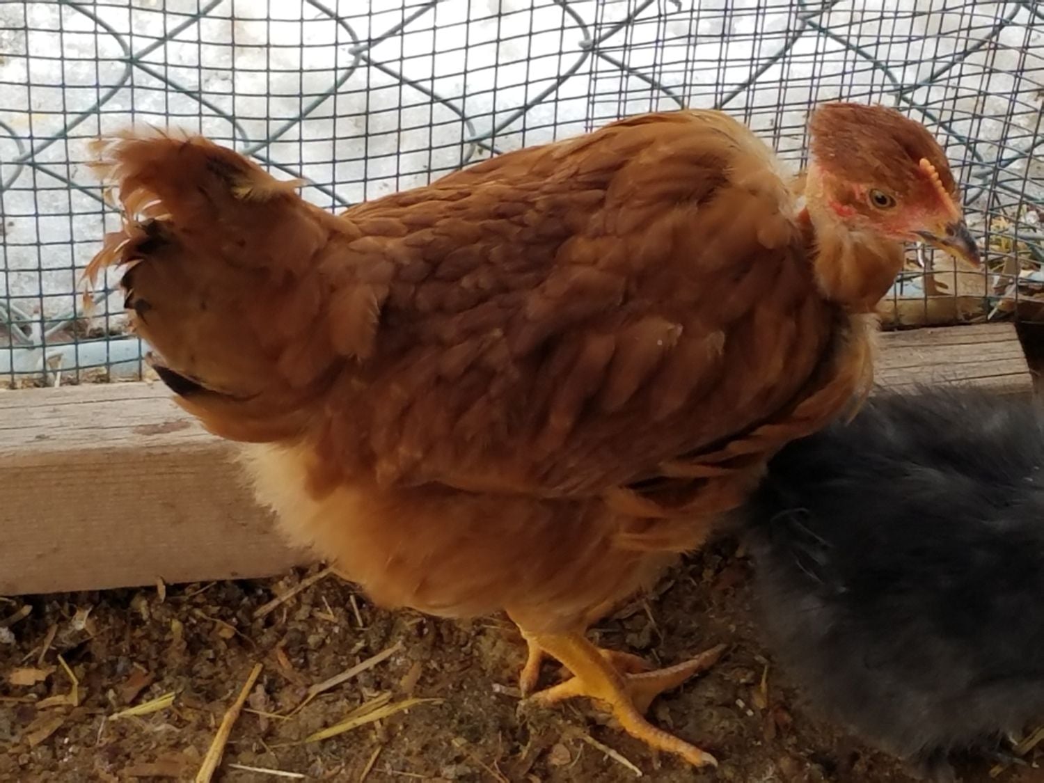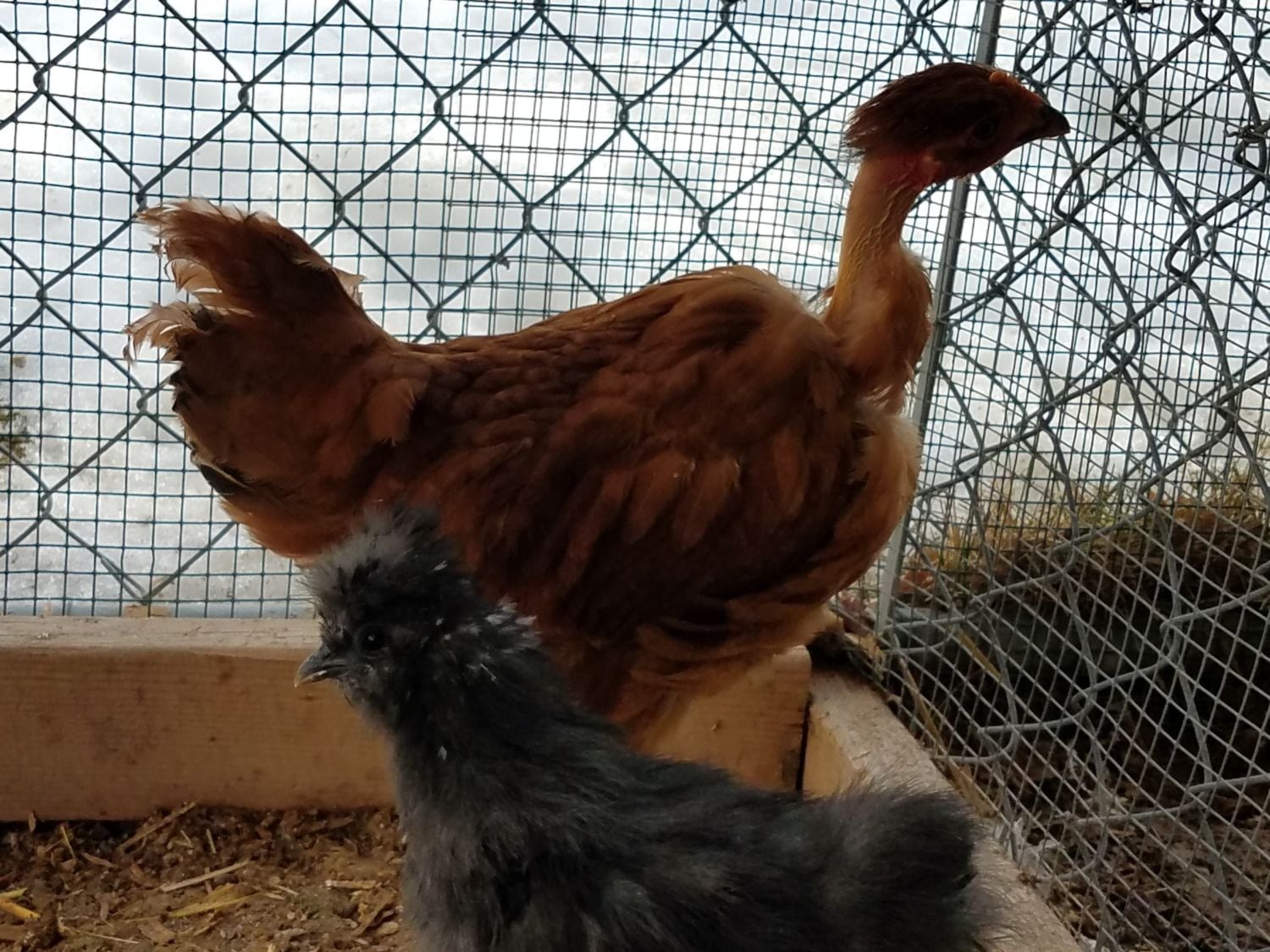Oh man, baby NN's! I'm in love...! Here is my Gladys. Her and this silkie are best buds. Wonder what they will do apart come spring when I put that silkie in with the other silkies. And Gladys with the big girls. They are separated on by chicken wire from the big girls, so, Gladys will know them. Ok, what's up with this girls tail tip? I think it's cute though. This is a Gladys, right? She has long legs..going to be a big girl.