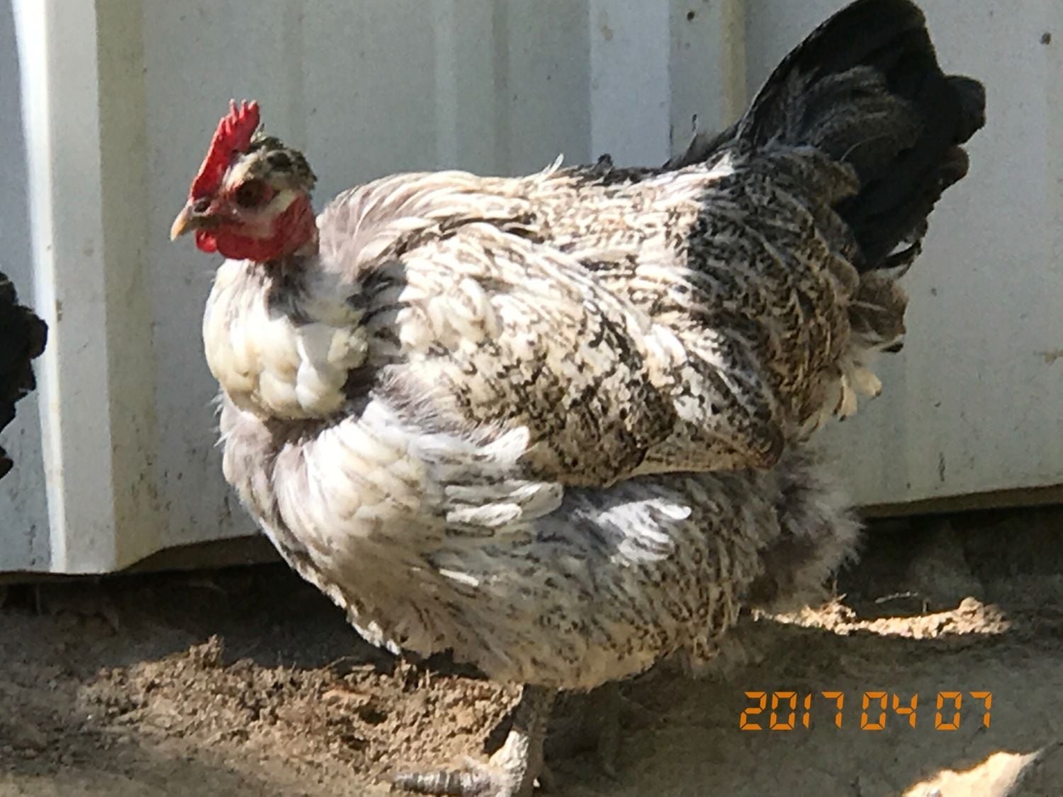 He's turning out to be a Silver Partridge. So he's obviously from my Cinnamon rooster out of my Mottled Partridge hens. Had to have been. I already have a Silver Partridge hen from the same mating from about a year ago.