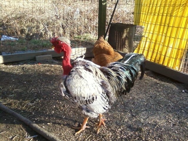 I have a buff Std size Showgirl and a red Turken roosters over Buff Orpington hens plus one black Turken hen.