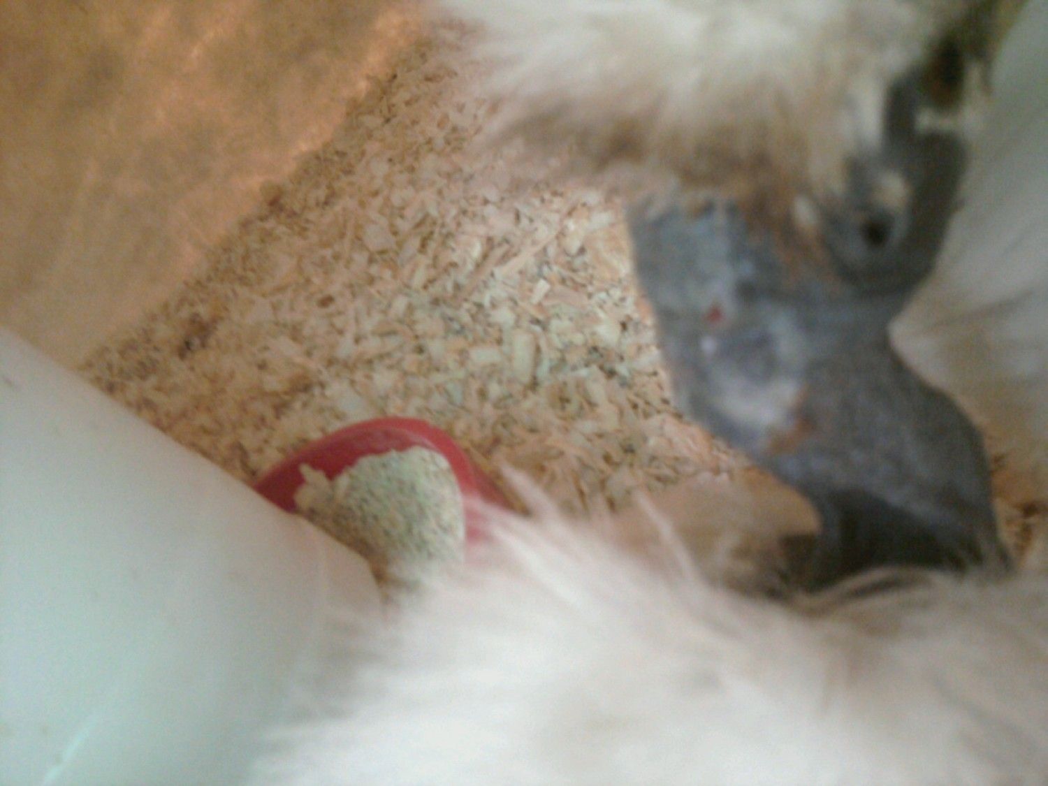 These pictures are just as bad as my first post, I am sorry. This is the best I can do. I hope you can see enough to help. This is "Boo-Boo". She has been named this because of her lesions. This is the same chicken that I posted about a month ago. The other chicken got over it. I thought she was getting better from the triple antibiotic cream I was using. But, I was obviously wrong. :( Every time it looks like it is clearing up, it comes back! It never totally goes away. The chicks are outside now. No other chick has this problem and she is with all of them. I guess I will stop using the antibiotic cream because it is not working after all.