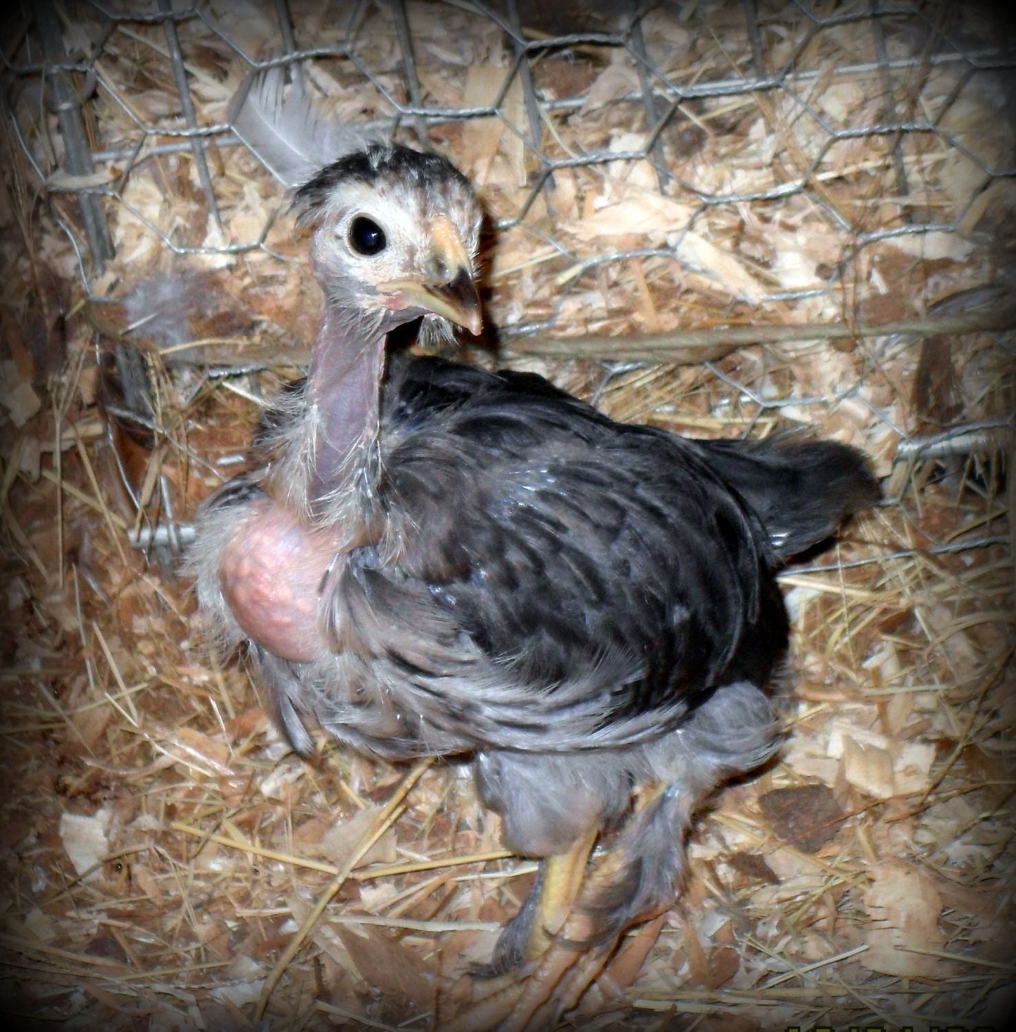 This is Mary AKA flower. I had to use a different computer a make a new account due to poor memory of password. Anyway I was incubating a few eggs from Sparkel my tiny black and golden NN covered by Victor my only mature male a blue Silkie. I am so wanting some showgirls..................well only one of three fertile eggs worked out and she is a real cutie but not neked. Boo hoo