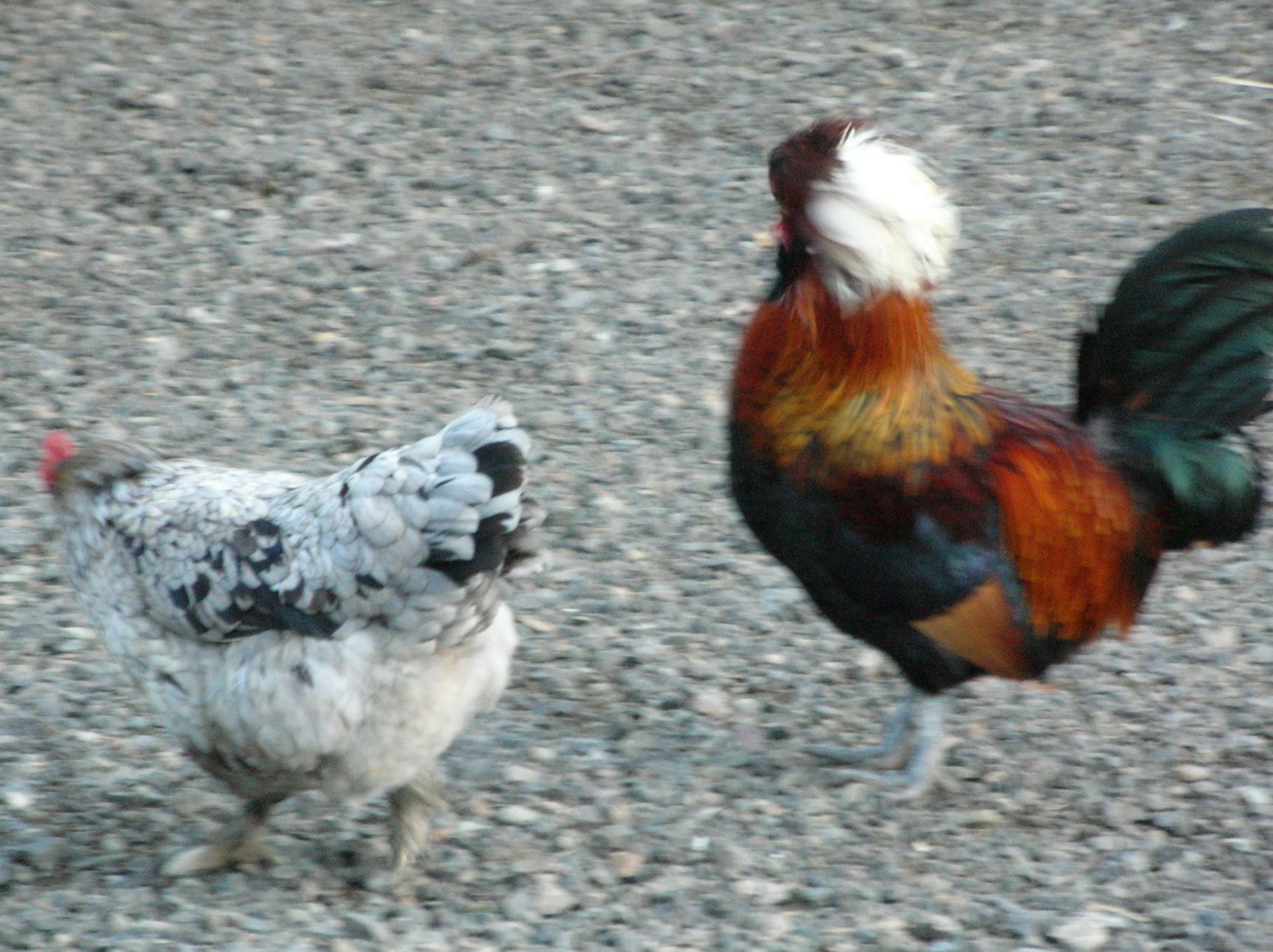 Silkie roo bred with Rhode island Red(yellow legs due to Id)= cockerels either all or mostly light skinned, pullets dark skinned. Notice the sexes are 'reverse' of the true sex linking above as for black skin but 'true' just like barring as for Id making the skins light on cockerels but not on pullets.