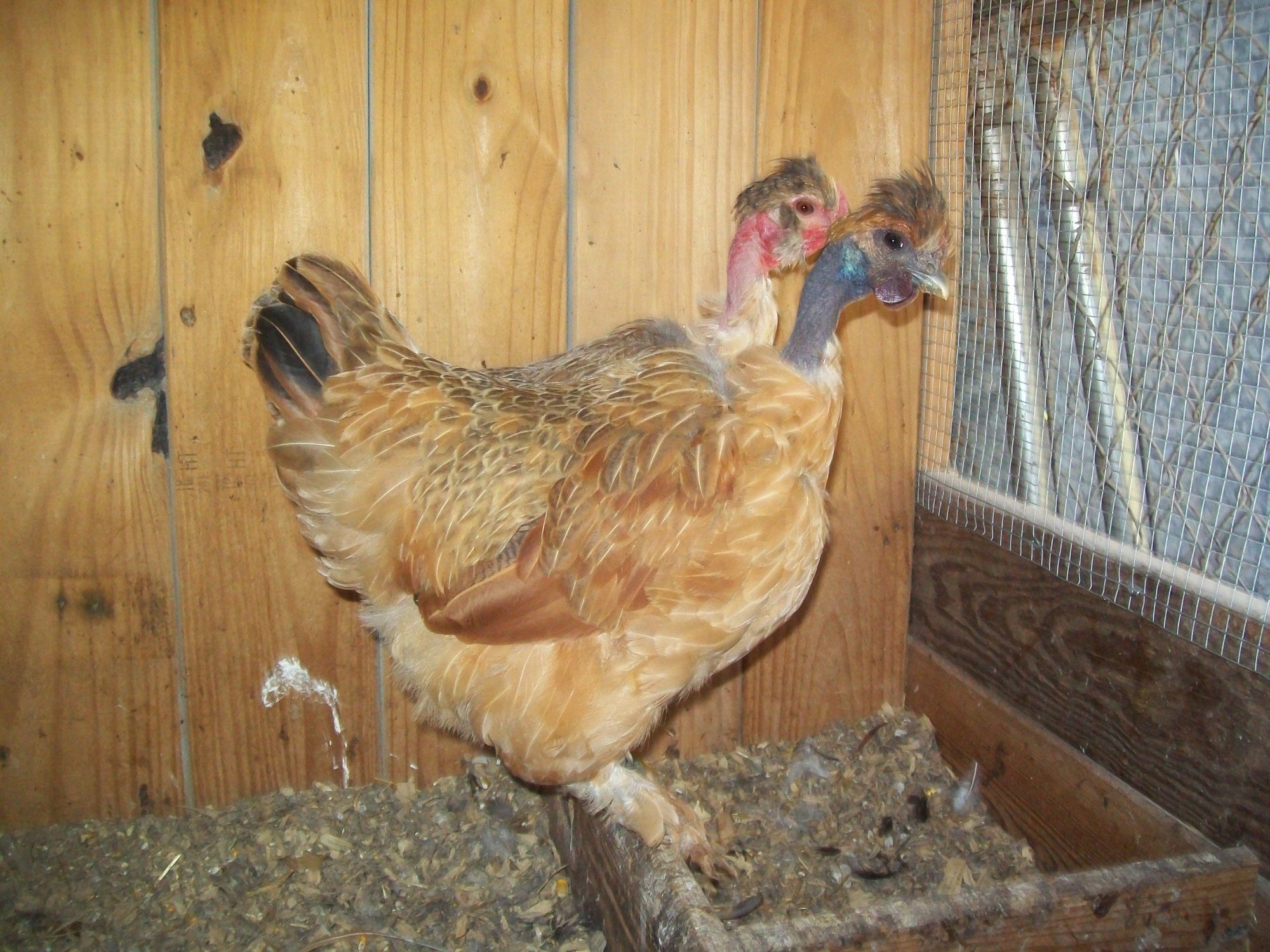She is a Full blooded Cochin(should have Feathered shanks) just with the Naked Neck gene added to its genomeI'm not a big fan of feathered legs, but that is sooooo cute!
