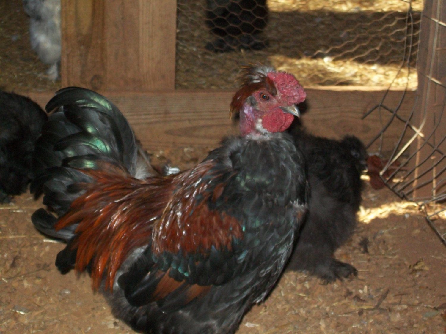 I released everyone for the first time yesterday.Just wanted everyone to get used to being here before I did so.Everyone got along great,just a few skirmishes but nothing major.My property and the surrounding property is heavily wooded so everybody staked out their territory and got along great and last night when I went around to fasten everyone up everyone was accounted for.Those 2 girls are my favorite.Thanks again for trusting me with your birds,they are gorgeous and thanks to you I now have the most unusual and the most colorful flock. When you get ready for eggs let me know and I will separate the ones you want eggs from.Follow me on byc and I will be posting pics often.GeorgiaBoy.... Thank you for posting pictures! It looks like they are doing well and I miss those 2 girls!Heck, I miss them all! Today will be my last day with internet until the 30th when it can be connected up in PA. I will have alot of catching up to do! You will have to post pictures of the chicks from your pairings!![]()