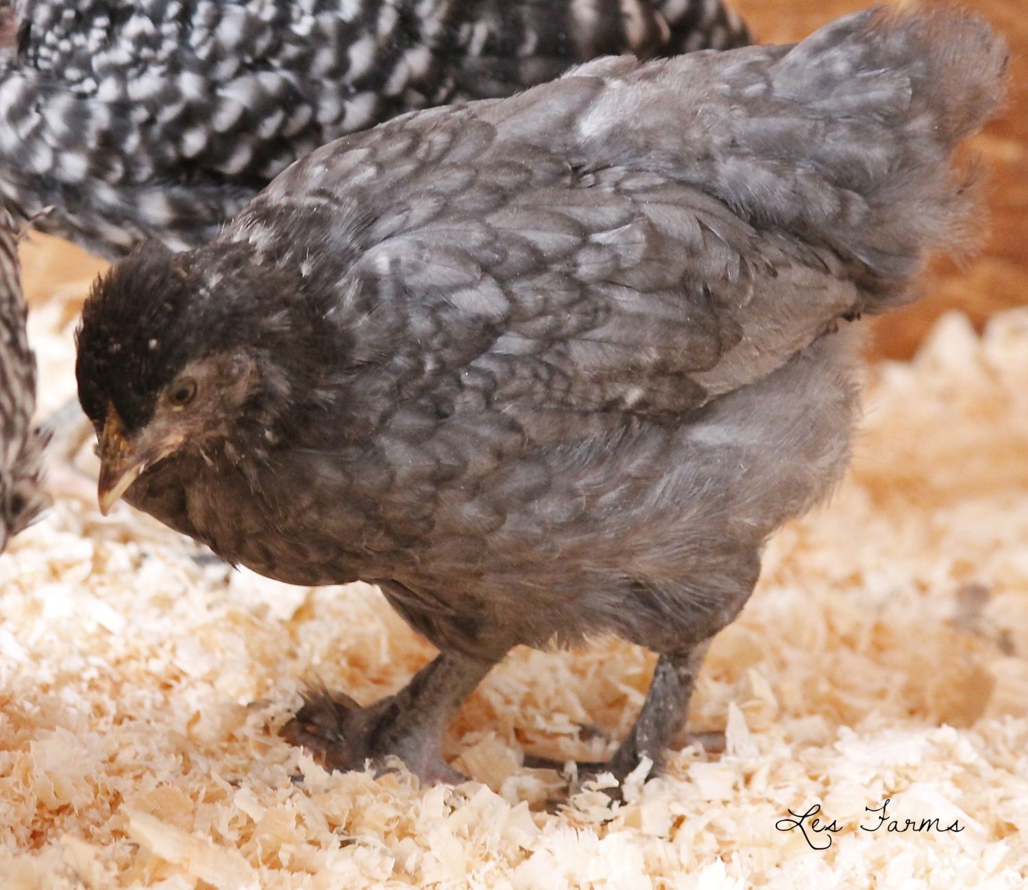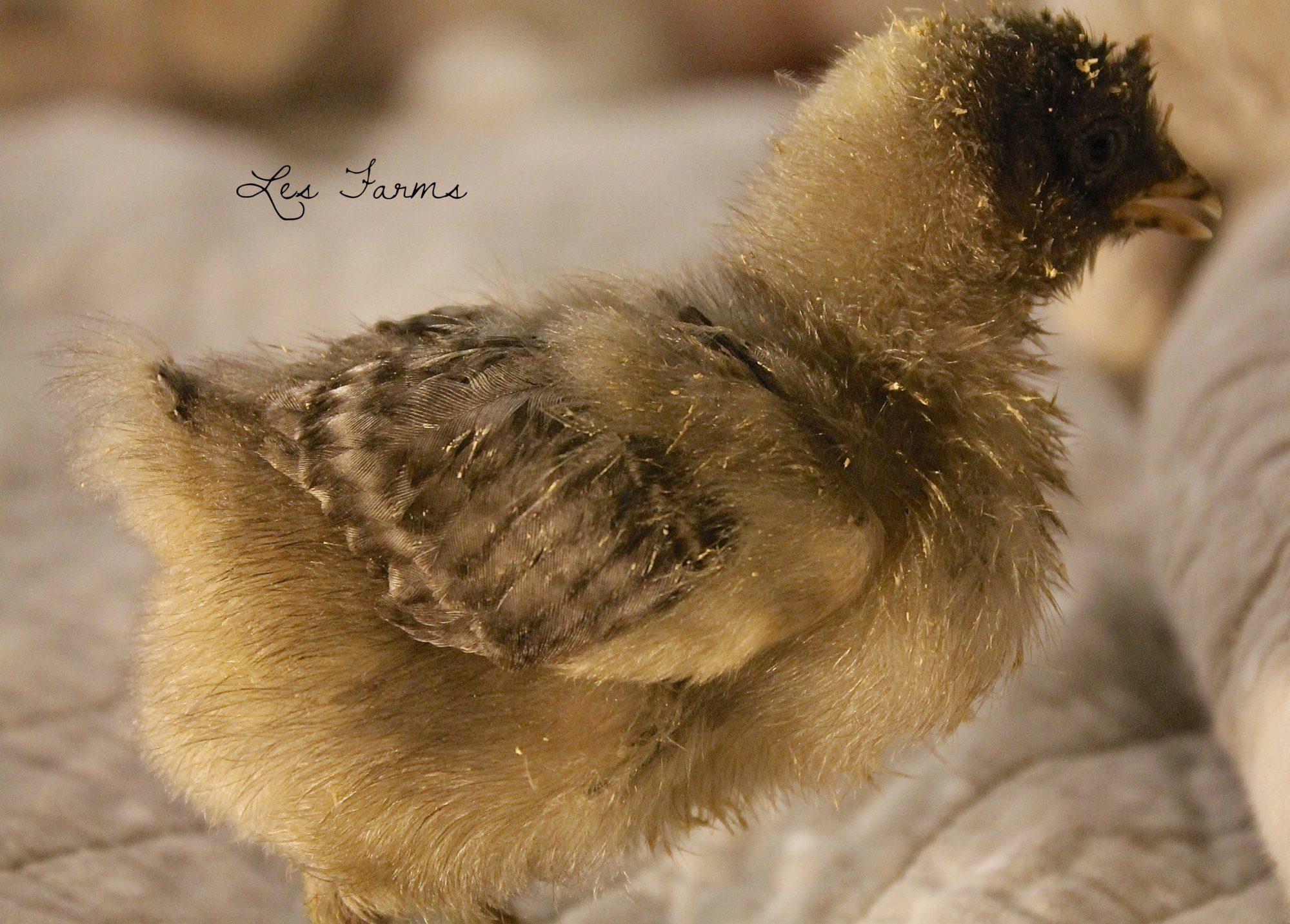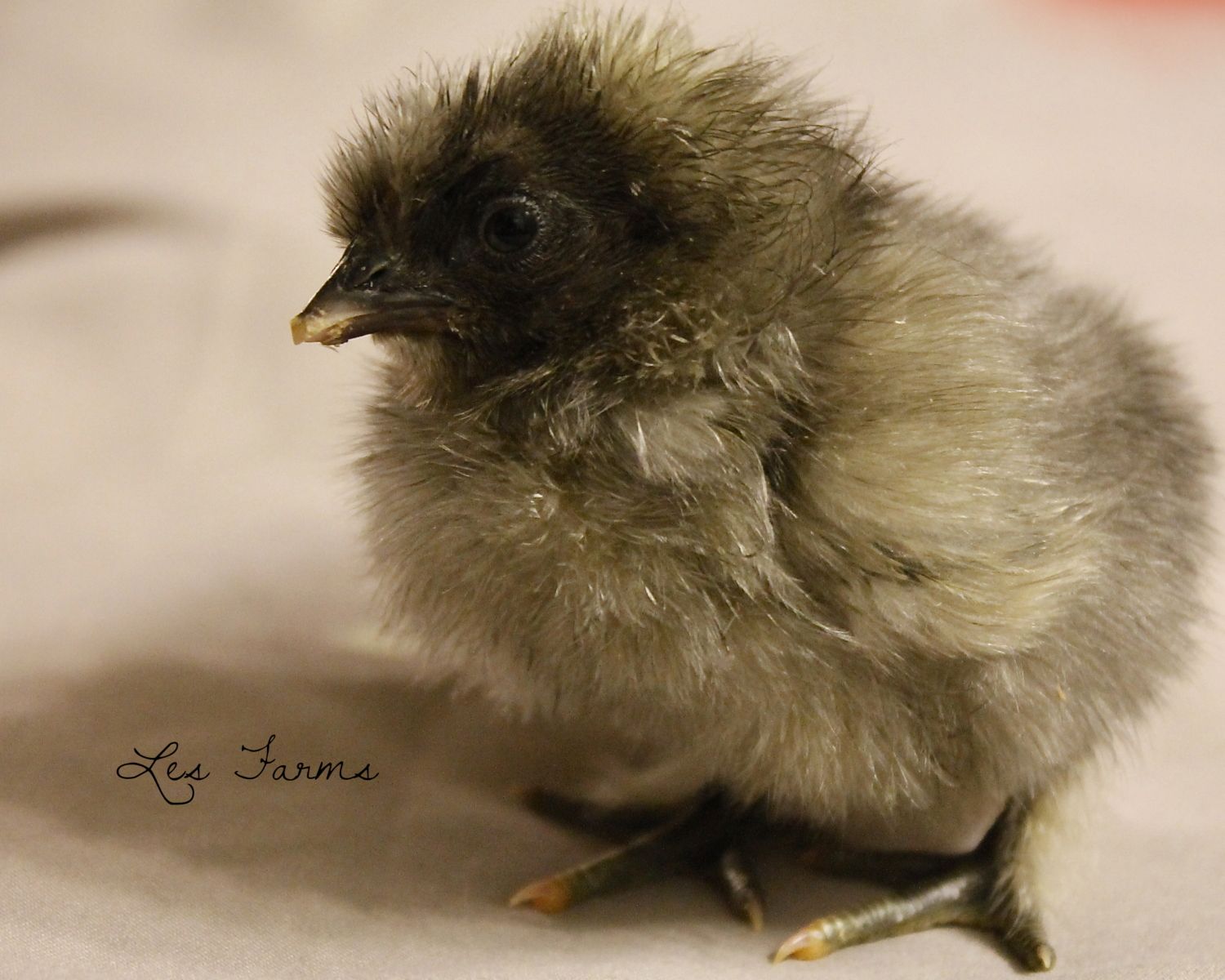 Here's a replay.. This is the chick. Came out of a silkie egg, and I thought that one of my Ameraucana bantams could be the father.. Or a barred rock.. You thought barred rock..