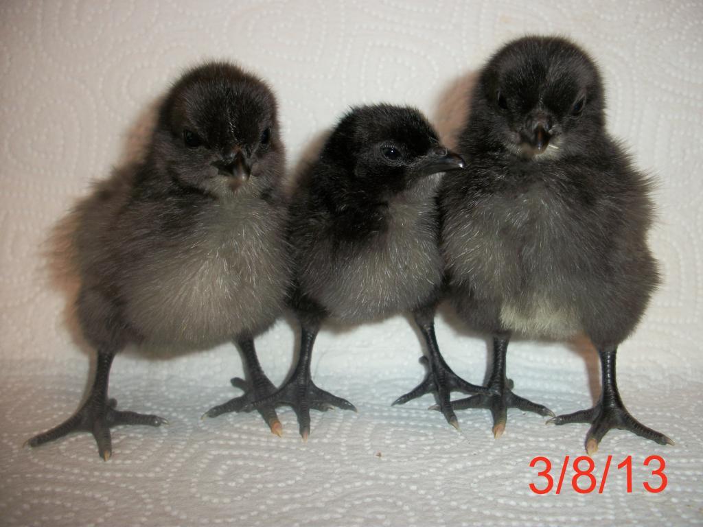 The Naked Neck chick on the right is from a blue NN hen and a black Java guy. Left one is from NNFGE pen.