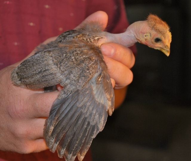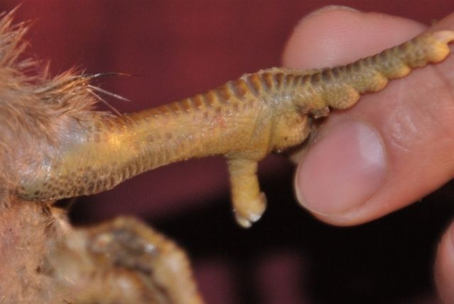 This ones skin is so transluescent and feather color so faded looking it is almost like a porcelien chicken