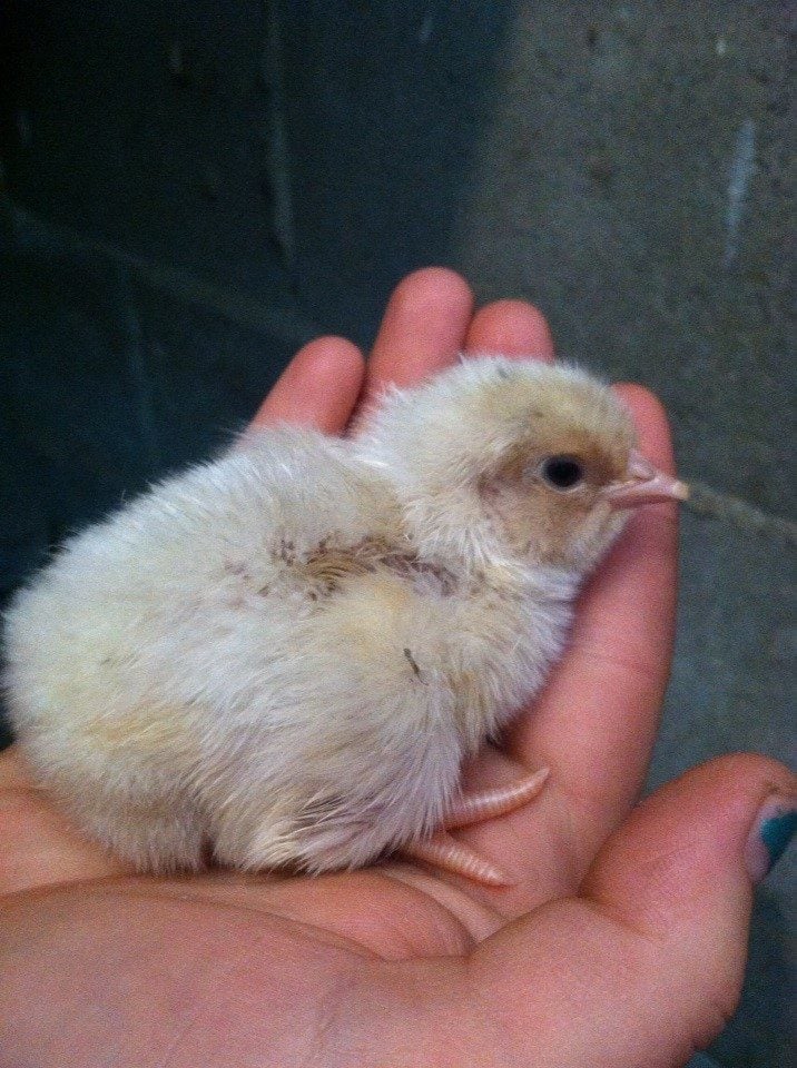 Does anyone have a picture of what a white or light standard sized Turken that is missing the NN gene will grow up to look like? Had one today from a bonus hatching egg. She (if a she) is going to be a pet or a layer- we are not culling for genetics, as this is just a little backyard production flock/no roosters. :)