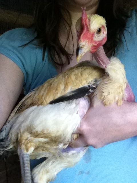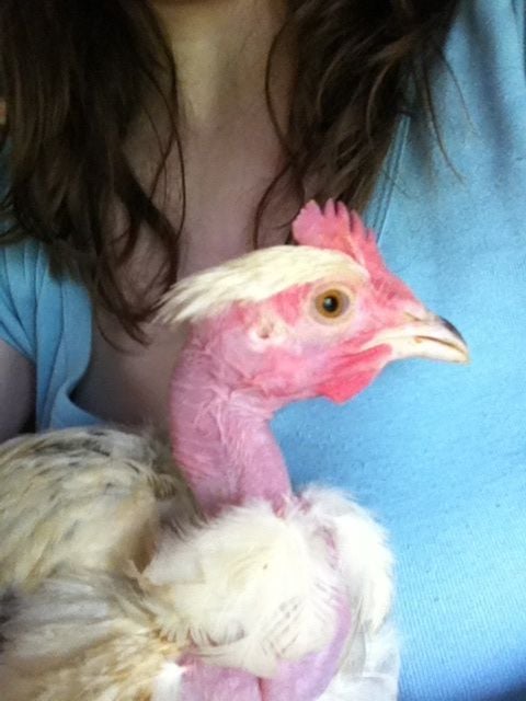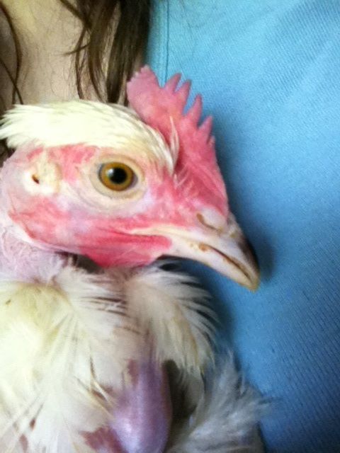 This is Winston. Compared to a lot of gals, he obviously looks roo-ish, but his comb has never gotten as red or "in your face" as Herman's (I guess that could be attributed to his being white..pardon his dirtiness) and his wattles are MUCH smaller. He's either a girly man or a manly girl lol.