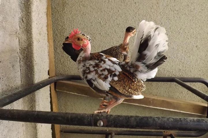 Is he truly rumpless, no tail bone at all, or just slow at developing tail feathers. My EE' males have been slow at tail growing. An EE can be crossed w/ araucuana (tailess and tufts) and a muffed ameracuana or other EE, or silkie or houdan or any other bearded breed.