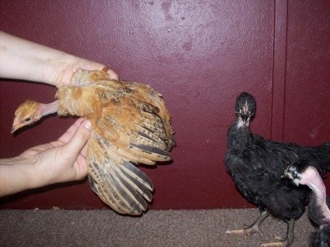 Sc is a gene that when combined w/ the NaNa gene can produce completely naked chickens. It takes both parents to be carriers for Sc, so far I only have one male carrier, Jaxom, but I do have one of his offspring also a carrier from the last batch, but she isn't old enough to lay yet.