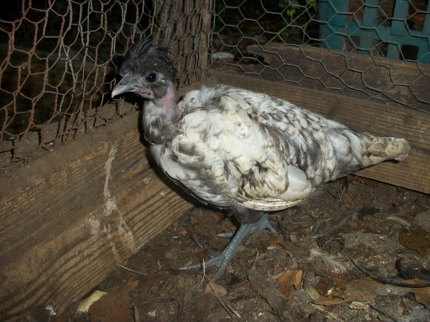 Oooh are you getting tempted to work with lacing?Hi! Glad to be here : ) Got one that is a puzzlement to me, maybe you know 'how'. This youngster is from a solid black hen that is a silver laced Polish x Silkie cross. The hen is dark-skinned, crested, and clean-legged. She is the only bird here that is split to laced. The father of the youngster has got to be a blue or splash Naked Neck (it could be one of many). I can see lacing (poor lacing), but I didn't think it was possible for it to show ????![]()