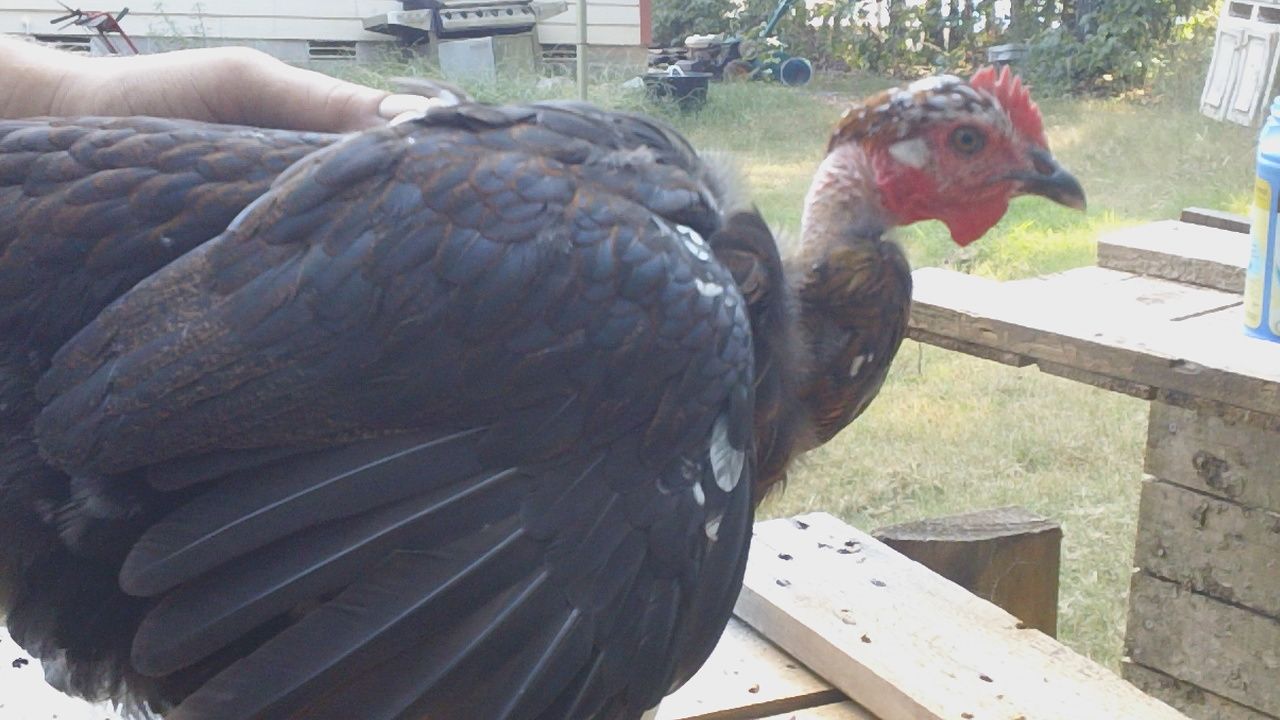 Hi I'm new to chickens and BYC, I feel so lucky to have a Naked Neck! My neighbor who hatched my 4 chicks on may 31, really wanted to keep her but since I only wanted 3 chicks it was best to let me have her so she wasn't lonely. Rosalee is the leader, she's sweet, quiet and brave. She comes running towards me when I see her! I love her coloring too. She leaves me the most beautiful feathers :-)