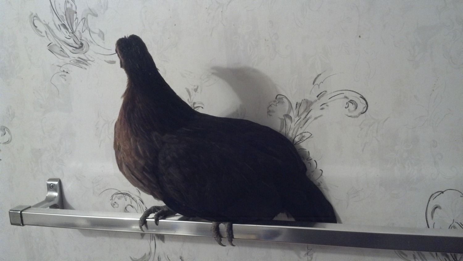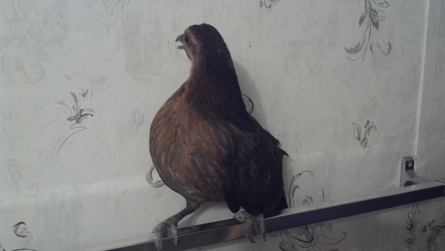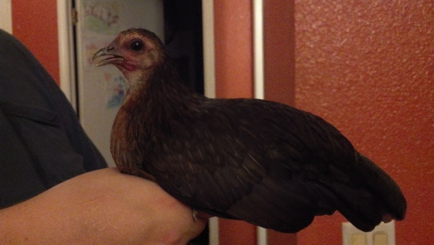 She is really pretty... and forgets she's a "wild chicken" when you hold her like this... she calms right down and sings to you!