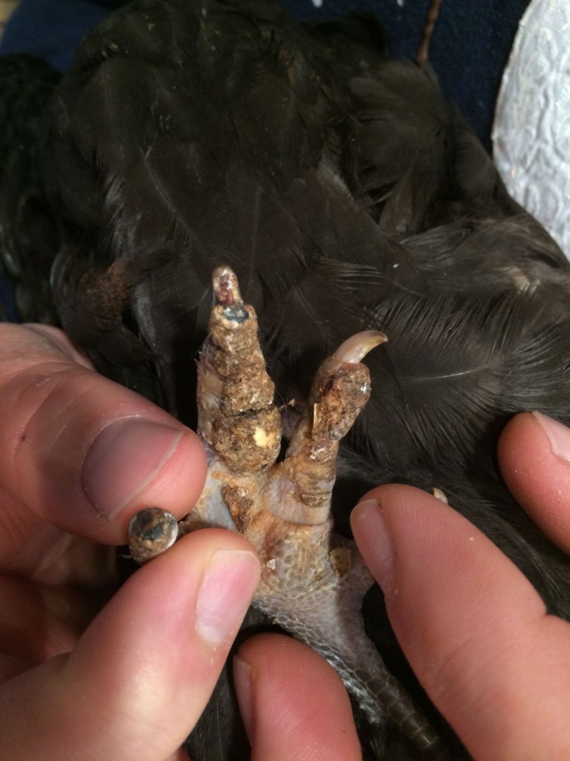 Have a 4 month old Black Copper Maran (she's the runt) who has a nasty toe issue. This is what I found on her today. (See pictures) She's been moved inside to a dog create with clean pine shavings, water, food and heat lamp with her 3 other sisters. Thoughts on treatment?