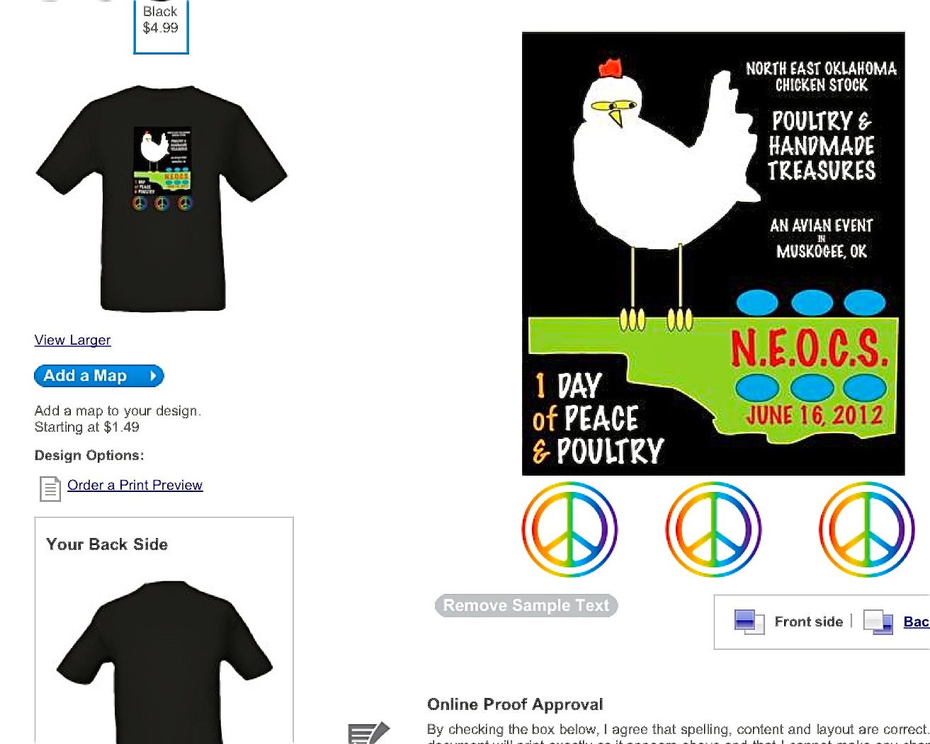I worked on T-shirt designs today. I think the white chicken on the black background is the best so far. It's similar to the old Woodstock T-shirt design with the red background. I'll post both so that you can see what I mean. Let me know your thoughts.