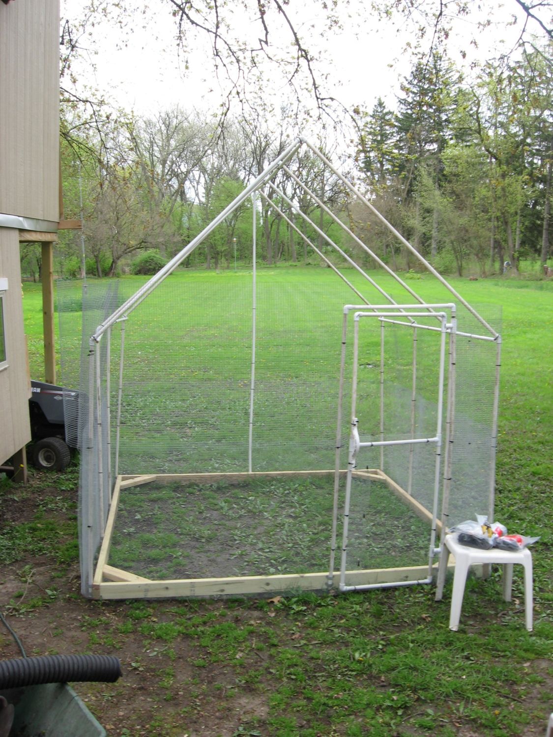 If you search on the forums for PVC tractors and/or hoop houses - these were easy to make, fairly inexpensive, and took a day or two to make. We had short lengths of PVC that's why it's peaked. Had we had 10' pieces, it'd have been a hoop! The hardware cloth was the expensive part! And making this made me appreciate good gloves - hardware cloth scratches something fierce!