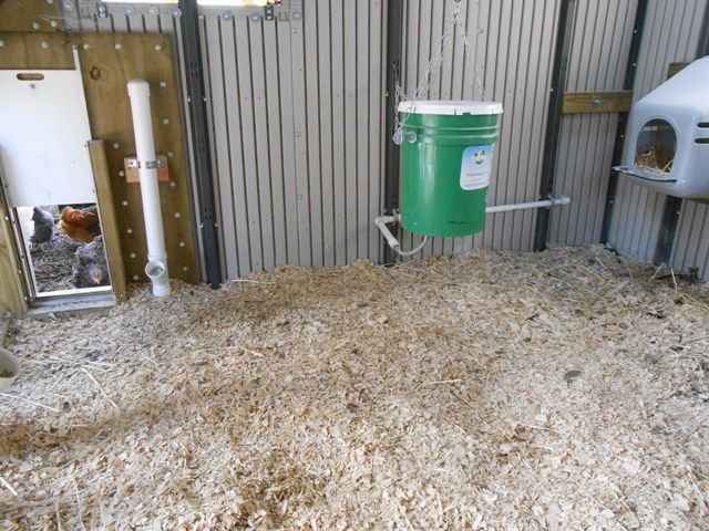 I'm using one of those 5-gallon waterers that are basically a bottle upside down with a tray at the bottom right now. If I put it on the ground, my chickens seem to fill the waterer up with shavings or sand within five minutes of our cleaning and filling it. Right now it's not too big a problem, as the the kids are out of school and can check a few times a day to make sure they have water.
