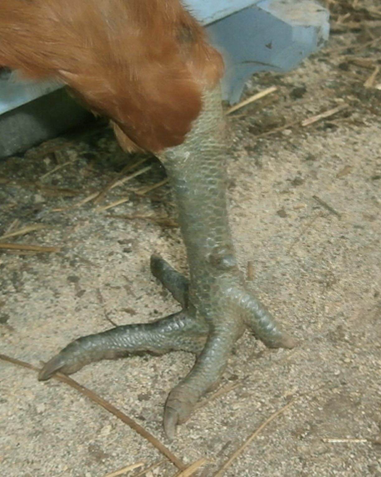 It is certainly bigger than the others, and while he does have the slate-greenish leg coloring, there is no sign of a beard or muffs and the comb isn't exactly a pea comb either. IOW, he does not bear a particularly striking resemblance to many of the confirmed Easter Egger roosters I've seen on these boards
