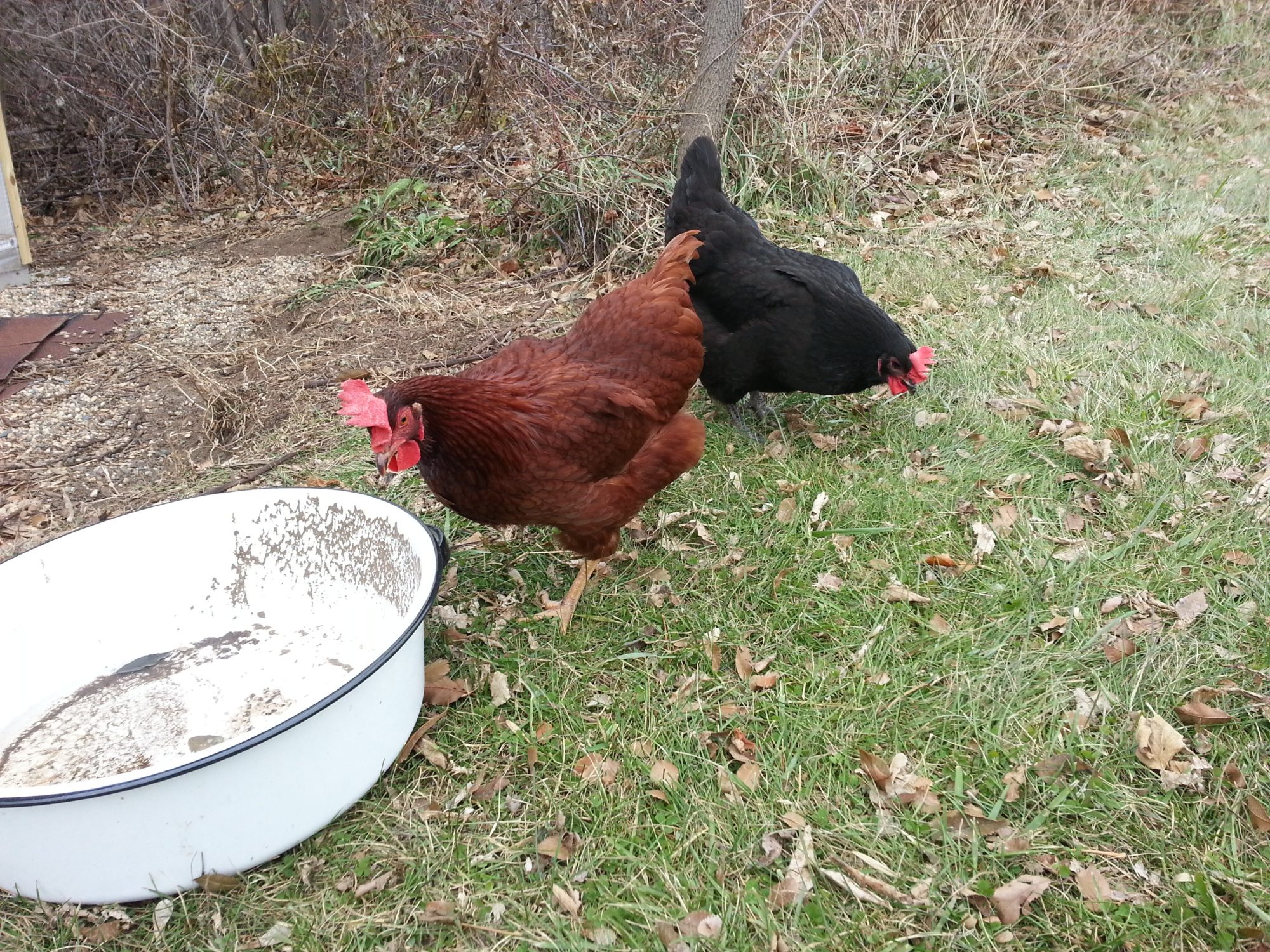 This is Flora, the Australorp, and her bestie, Red Hen, a couple of days ago.