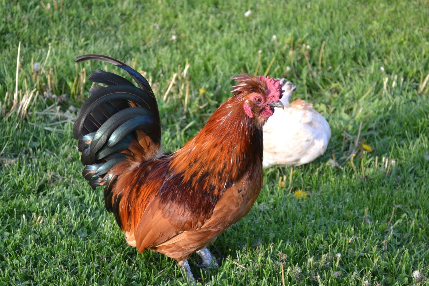 These are my bantam rooster & hen, which I rescued from a farm, but I wasn't told what breed(s) they are. I don't even know how old they are. I was looking for bantam chicks, but they said they only had these 2 and the hen hadn't been doing well since being moved into general population so I took these guys as adults