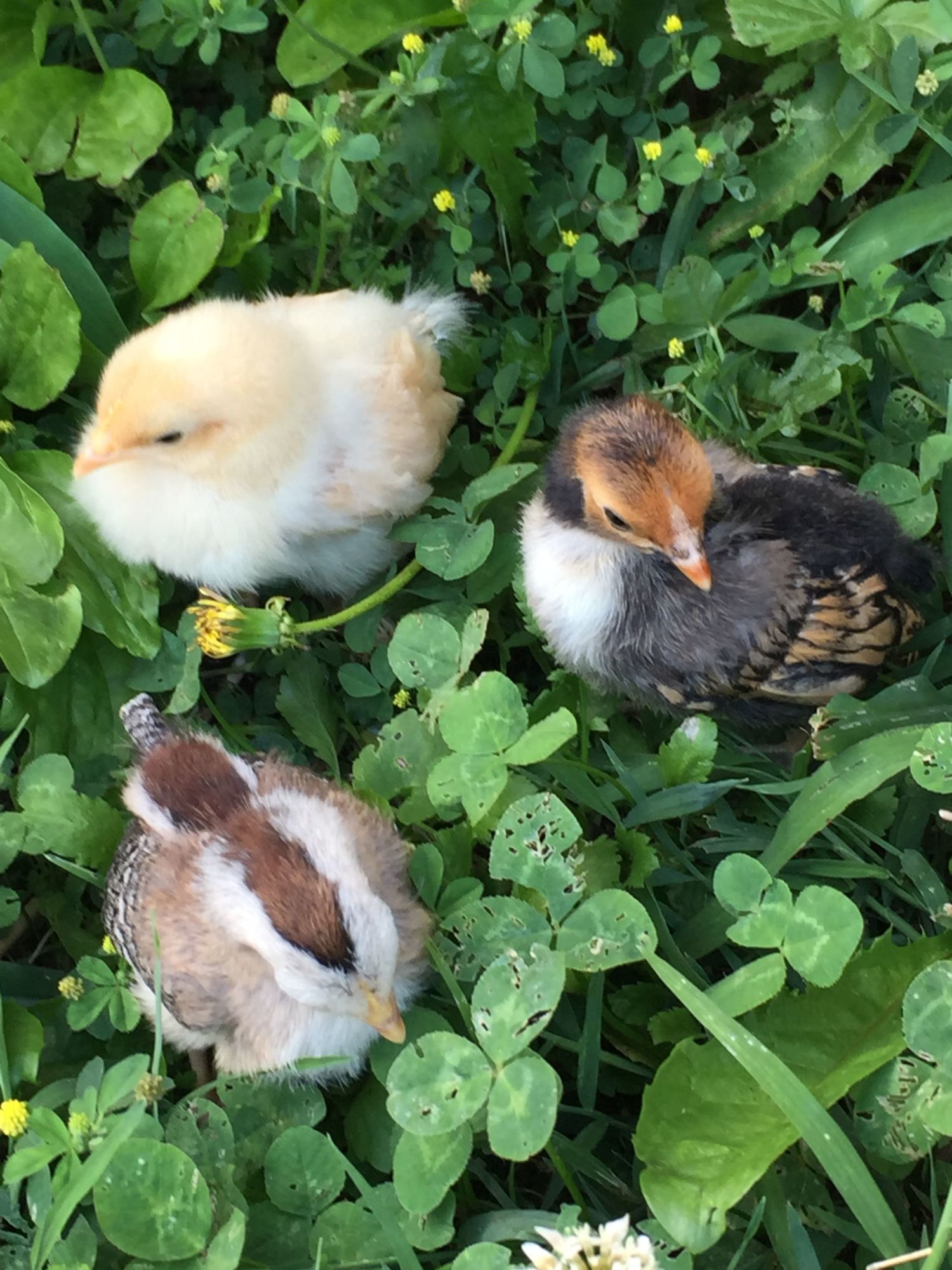 Jun 7, 2016 #2 QueenMisha Queen of the Coop 10 Years Friend Joined Jan 14, 2015 Messages 6,030 Reaction score 1,052 Points 386 Location Shingle Springs, California, USA The black and gold is likely a Sebright Bantam, the chipmunk stripe is a Silver Duckwing of some sort (most likely Old English Game Bantam). The white one could be several things but probably a Bantam Cochin.