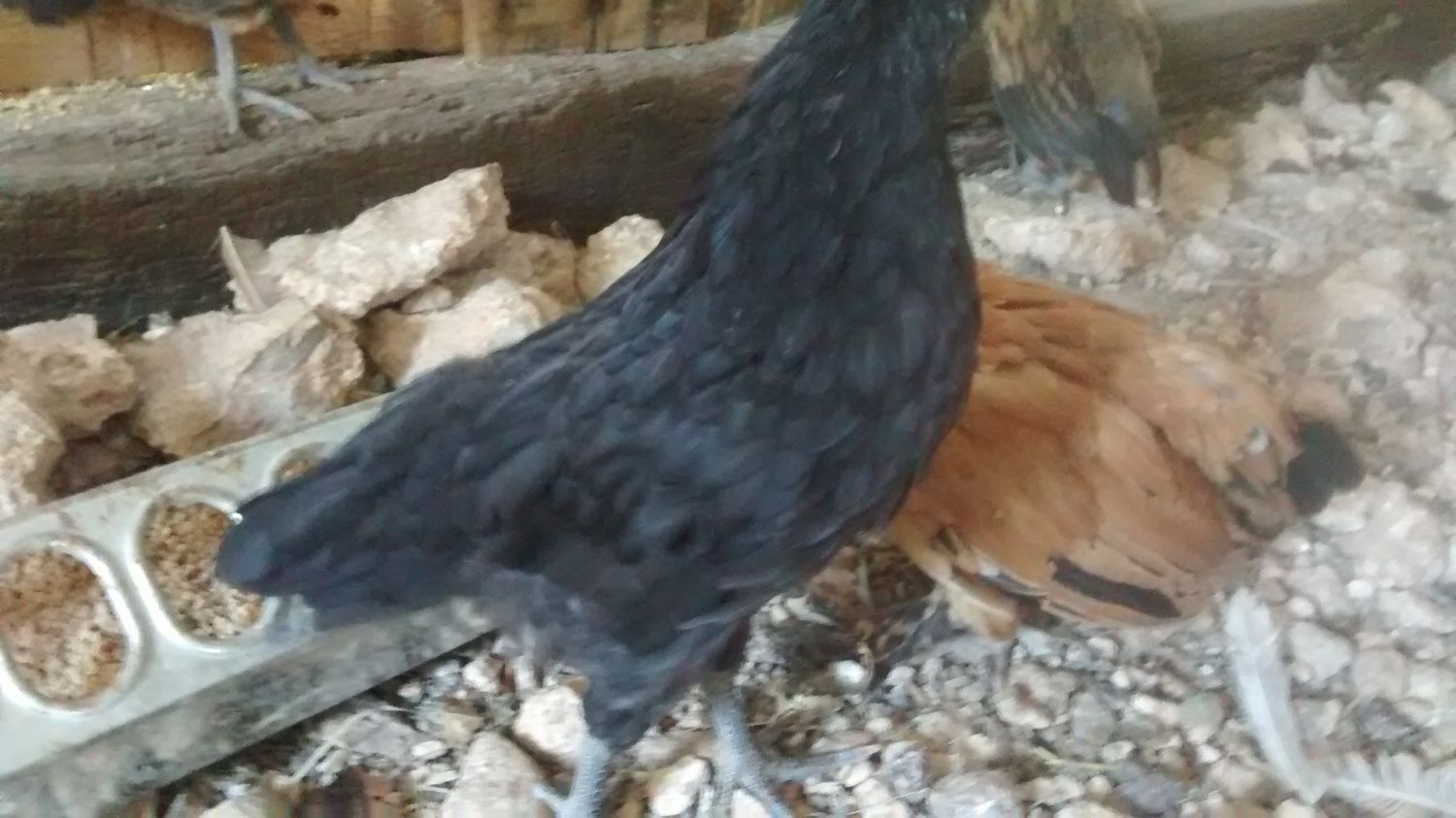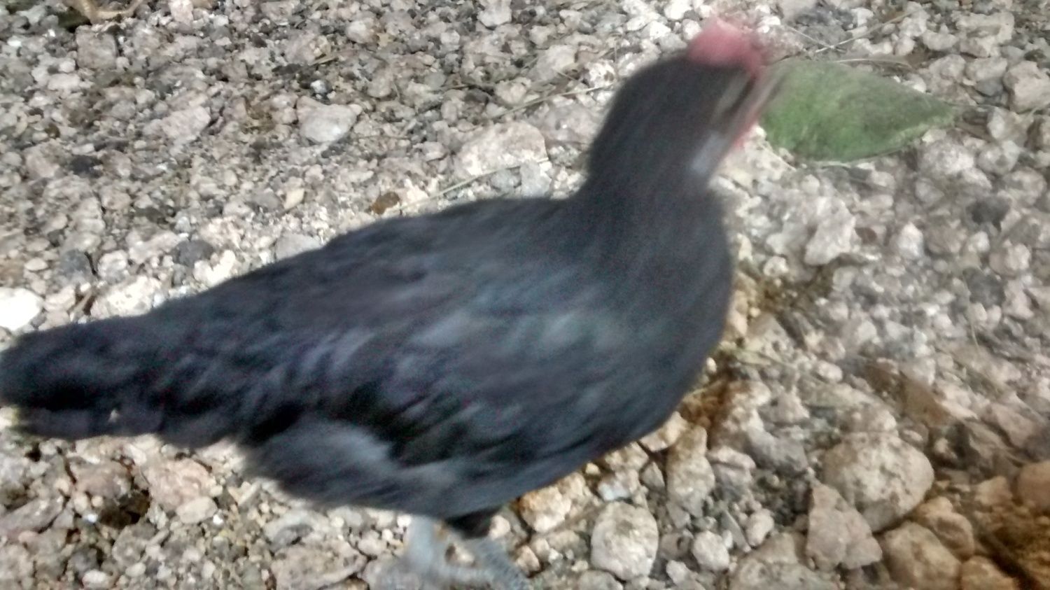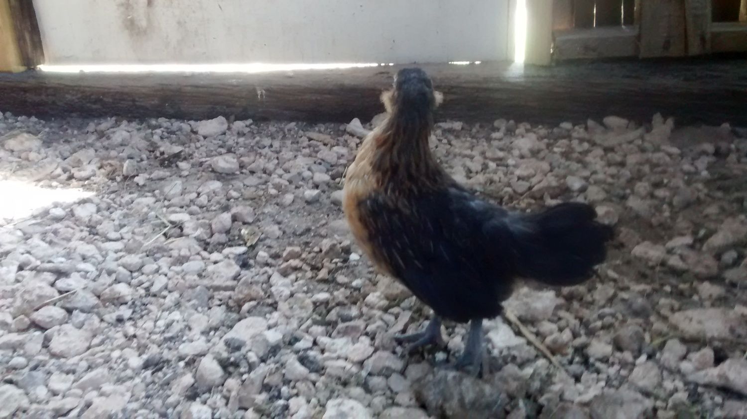 Bantam #9 - Kind of looks the same as the other two black ones, but has no wattles or comb. Maybe this one's a hen and the other two black ones were roosters? I have no idea what breed this is.