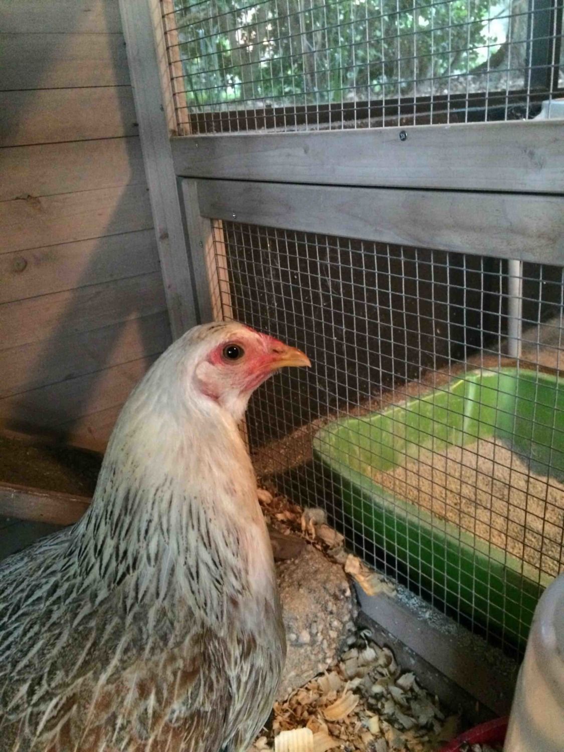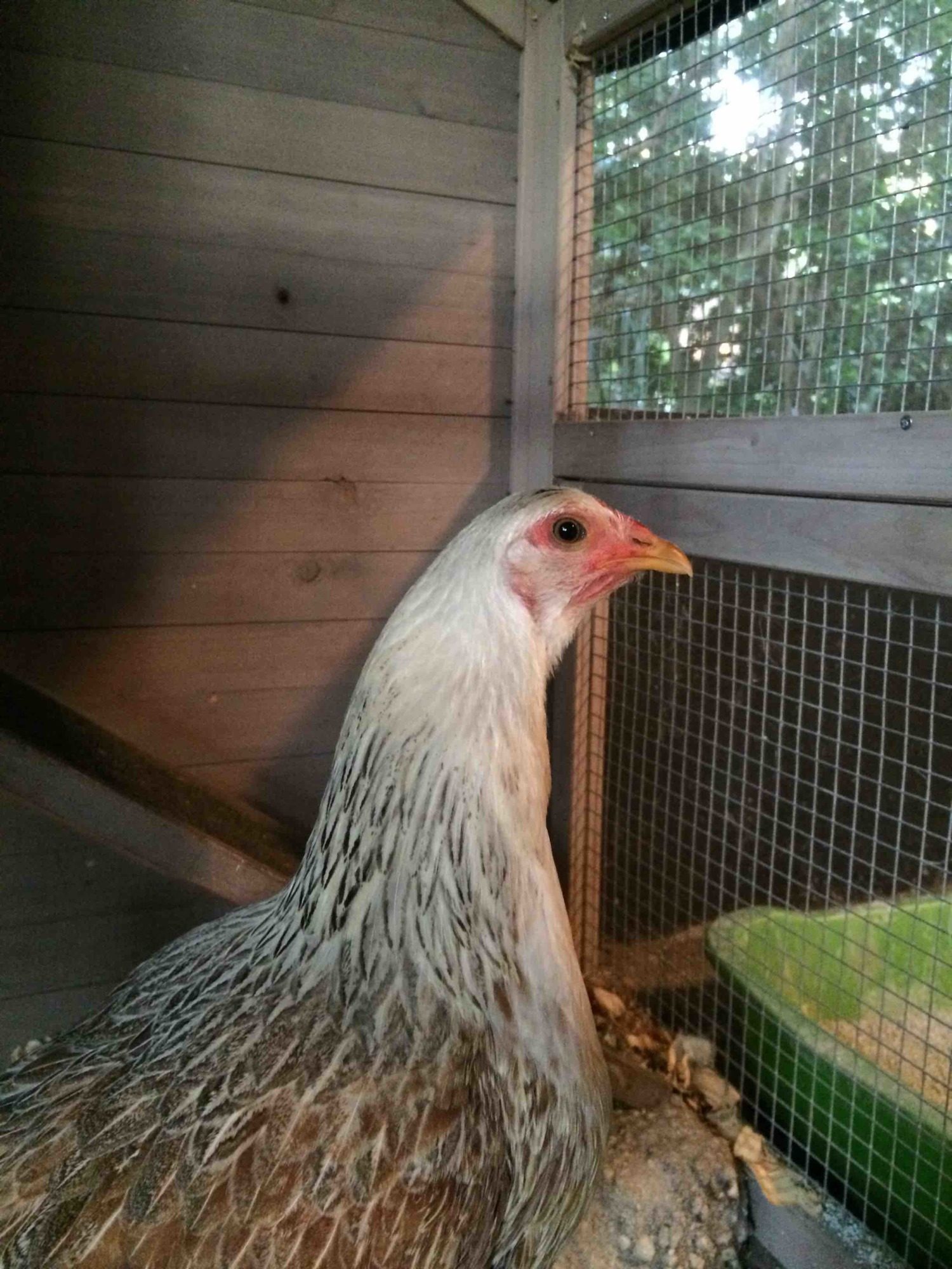 Amazingly, this hen was getting into our boat and lifting the hatch of our anchor well to lay her eggs for at least six days and we are pretty sure based on the number of eggs that this started while the boat was at the repair shop. The boat shop is located in a commercial area of town in N Florida. Not knowing anything about this hen, I am not sure if she was dubbed. There is no sign of injury.