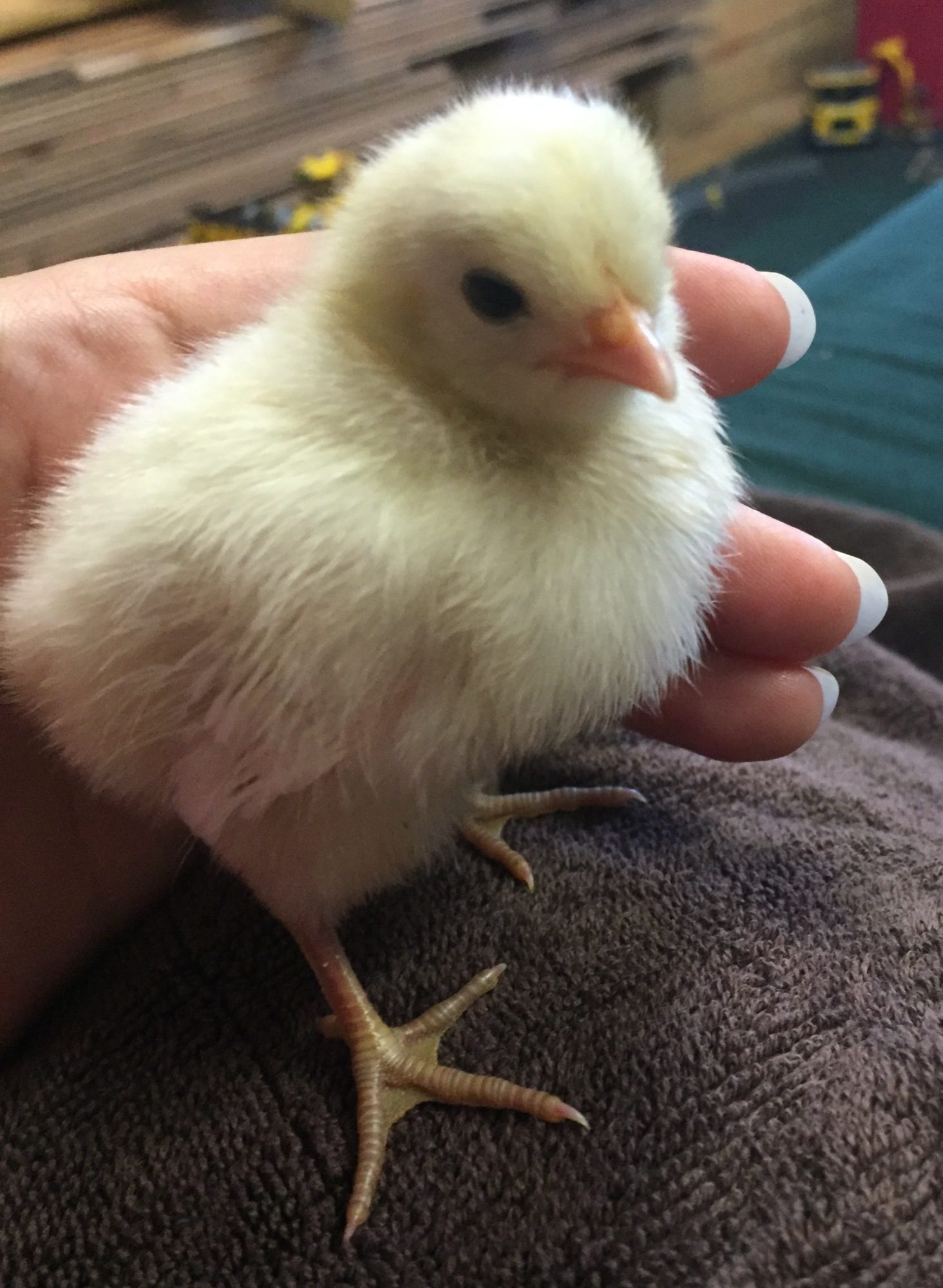 Because the chicks aren't fully feathered yet, it's so hard to tell their breed. I agree with all your guesses (and no guesses