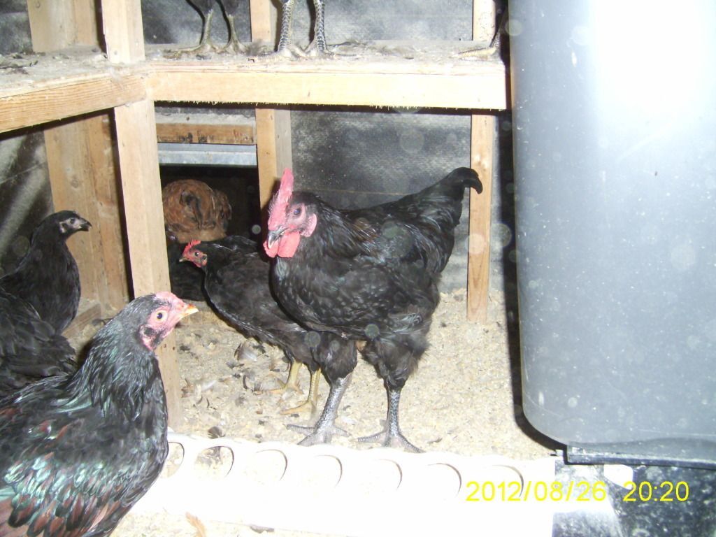 I bought some black broilers earlier this summer. Liked them and went back to get more. Well the lady who ran the place was gone and the helper gave me some chickens that I think was some kind of fancy grab bag. The one from earlier this summer turned out all black and grew a nice size, the second batch seems more medium size and has some different color feathers coming in.