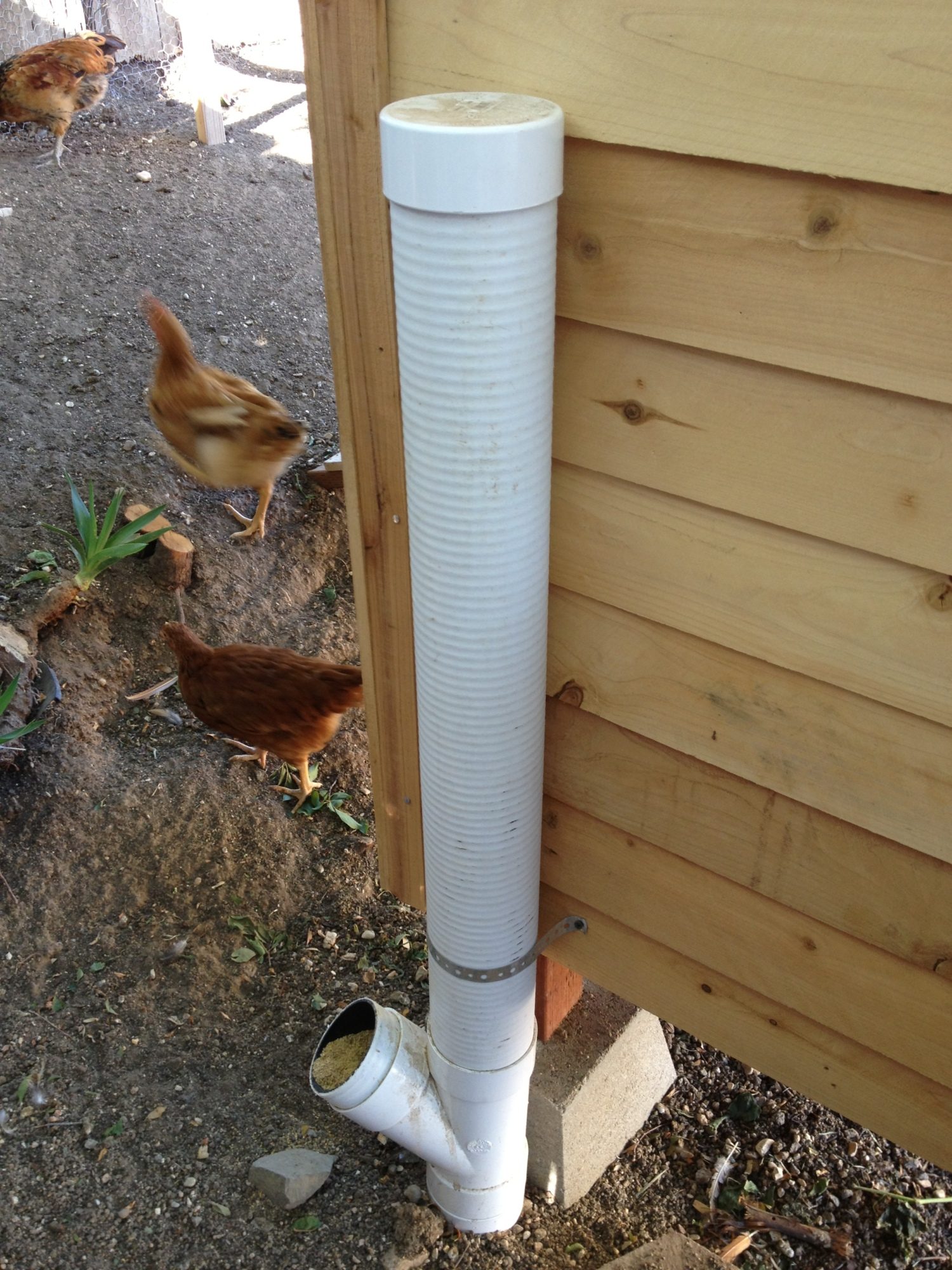 Has anybody ever made a small one of these that would go inside a small coop? I have a coop which is raised off the ground and would prefer to have the feed indoors. Could I make a small one that may be able to be removed to be refilled? I don't want something inside that takes up a lot of space. Need ideas for mounting something like this that could be removed and replaced often. For some reason, I don't want to make a hole in my new coop. What if I decide not to feed indoors?