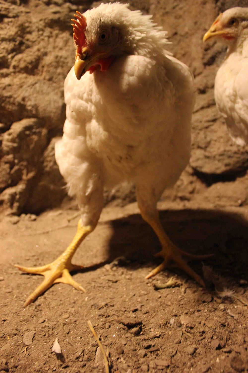 Can anyone tell me why the male chicken is not walking right his feet are out as can be seen in the first picture in the other picture you can see that he doesn't sit right either sometimes sits on the knees he can't stand on a stick it started about 2 weeks ago is that a problem is there something to do for it