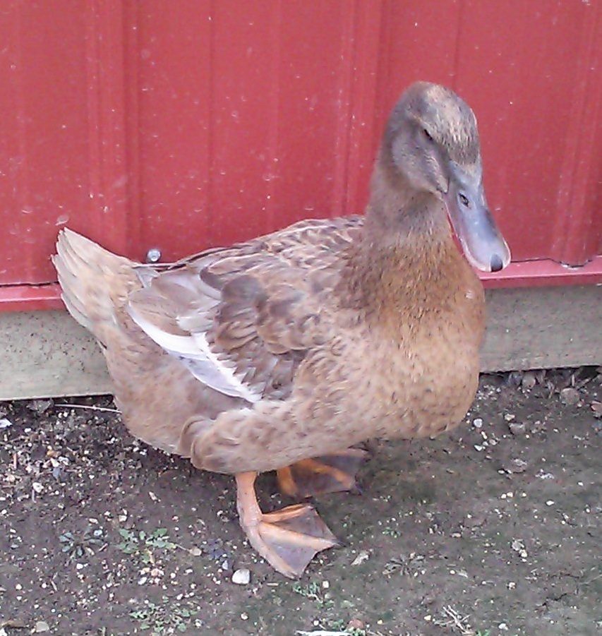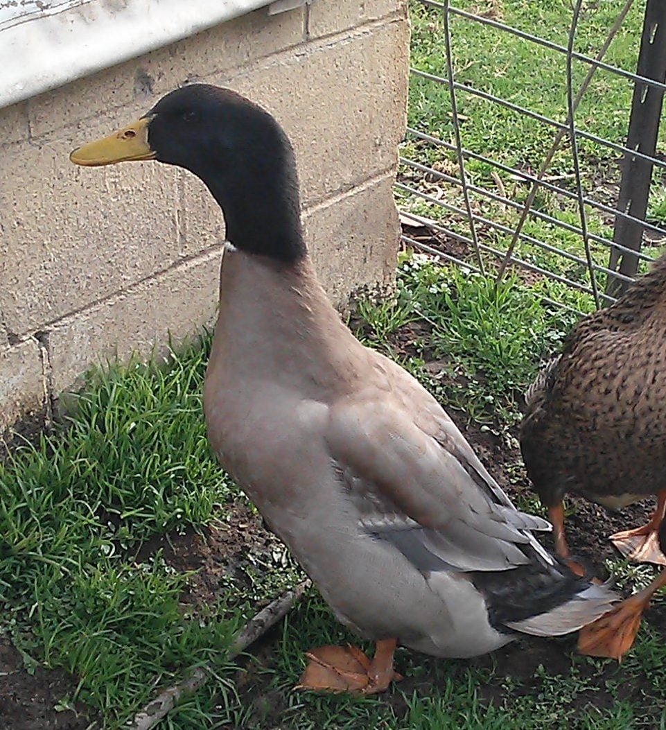 If it helps, I don't have any of the same colored breeds twice; I have a Saxony drake, a black-spotted Ancona drake, a silver Magpie drake, a tan Runner duck, and a Rouen duck. The rest are Pekins, three Muscovies, a goose, and six call ducks.