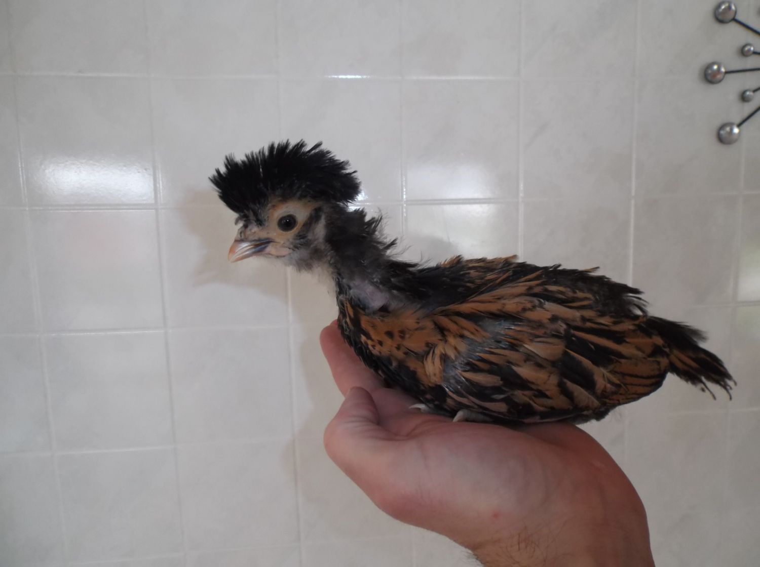 This is Fuzzhead. Obviously a golden polish. I'm wondering though, if this was our free mystery chick could this be a cockerel?