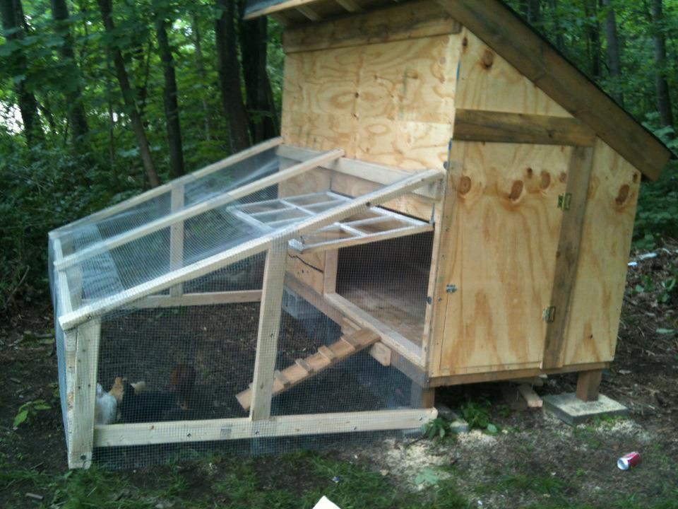 I used this idea and it works great so far... I still need to engineer some other ideas like a door in the run and a roost (i have some big cut branches for that) and nest box with a lid to collect the rent. Should I put a roost in the run too?