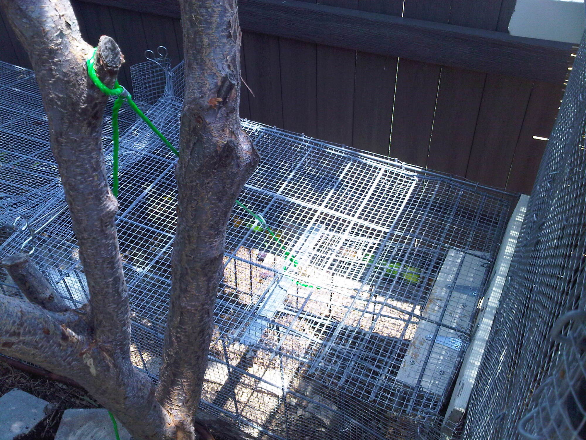 Below is a cable and pulley that opens the pop door from the coop to the main run. It clips to a ring on the outside of the coop. to secure them when closed I use a metal stick and run it through the hardware cloth on