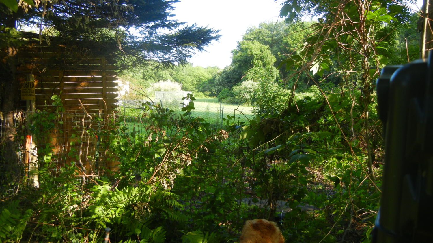 I have been trying to laugh more! The funniest part was what I saw this morning. After blocking our request for an 8 foot fence...here is what greeted me this morning. 6 foot panels turned on their side to a height of 8 ft. My game cam is on the right hand side, first picture...in no way does it take pixs of her property. It only goes off if someone is on ours!