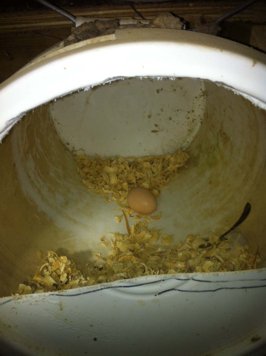Here is my nest box bucket. I only have 3 hens so I just need one. I velcro'd the carpet down so I can change it when necessary.