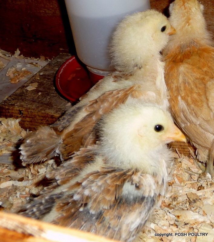 Oh she is beautiful! The lighter chick is starting to get feathers in on the wing tips and a few are very light, almost white but all the rest are very dark gray.
