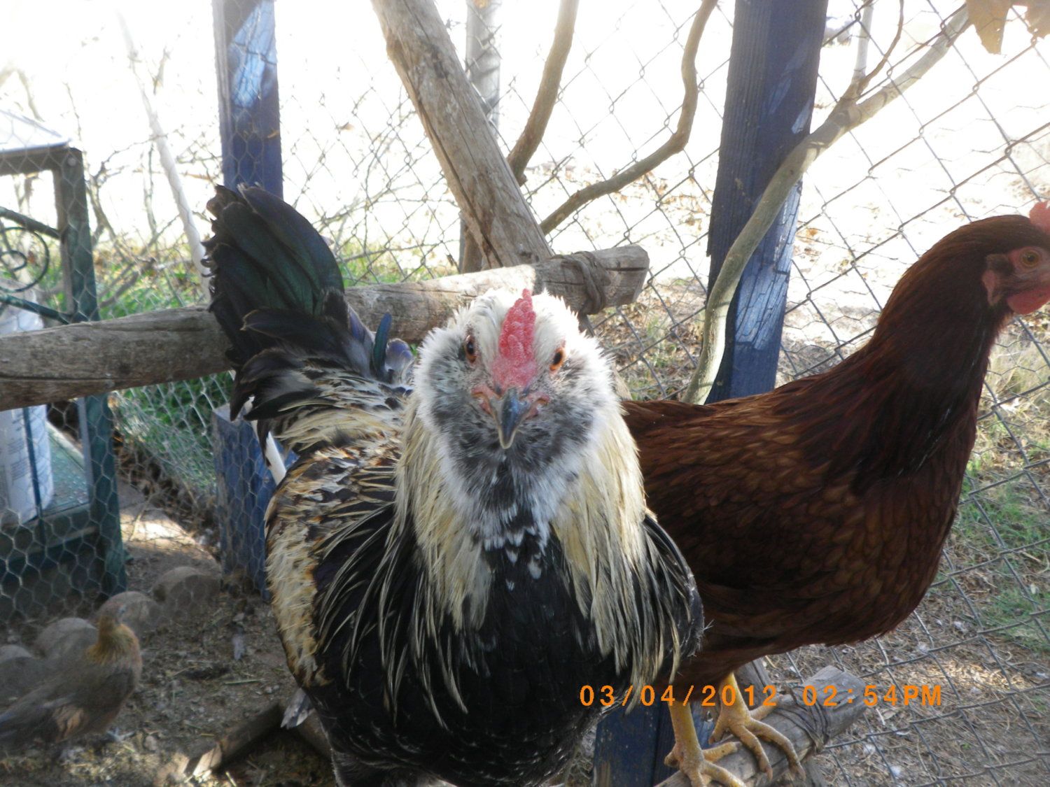 My guy and his two pullets are almost 2 months old but if your's are a lot younger then I'll just let Genny have the younger one. Then my little boy can stay with his pullets.![]()