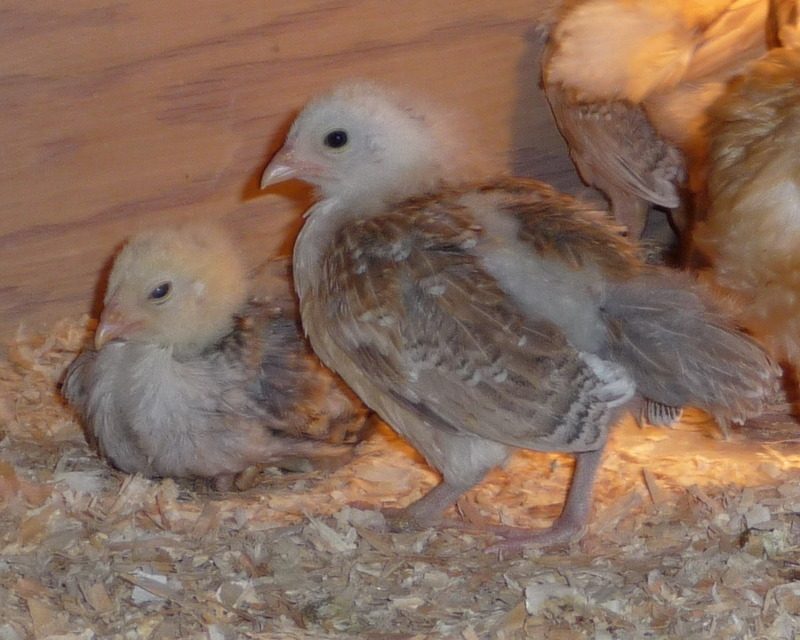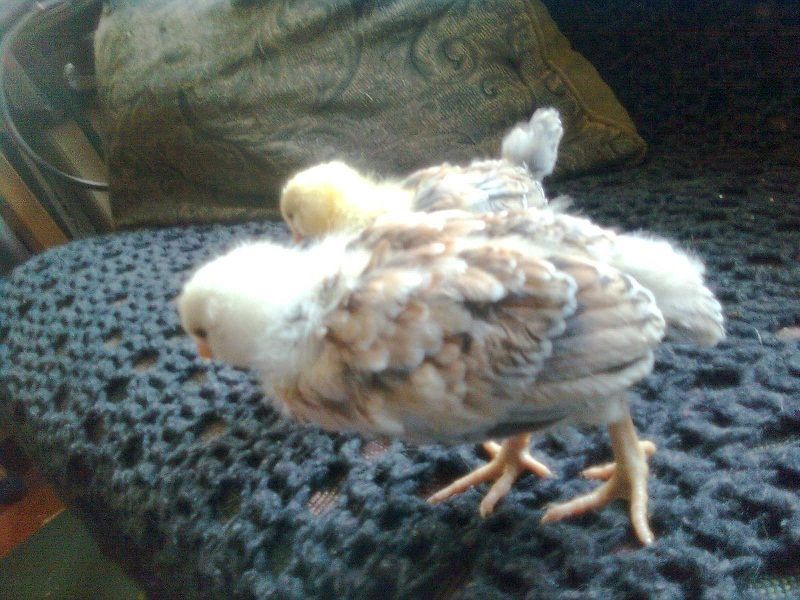 Ok these are horrible cell phone pics and the chicks might still be too young to tell, but does anyone have a guess on the gender of these two? I was thinking both pullets, but now the feathers are gold on the tips and blue further down the shaft.
