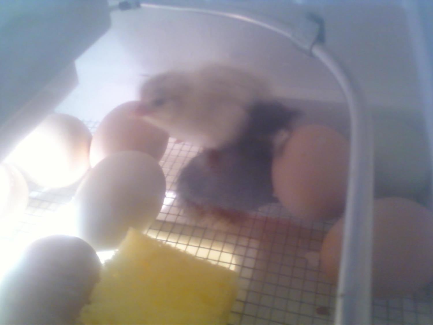 We have chicks!Today is day 20 and he just called me to say that 7 have hatched so far. Here's some pics (not great quality - cell phone):![]()