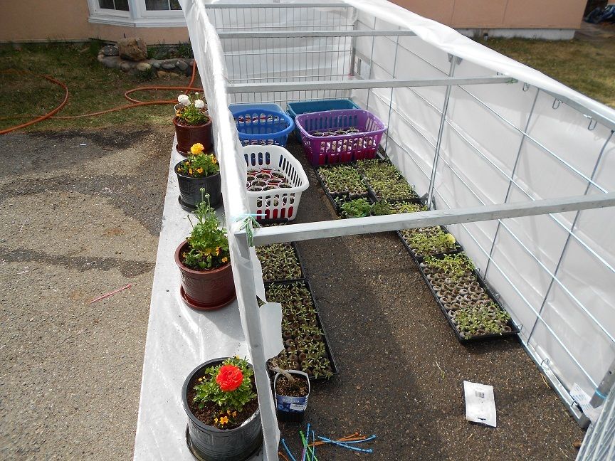 Lettuce is an inch high and looking beautiful. Some onions are 3 inches, others just peeking through. The kale and chard are about 2 inches in the containers. Planted spinach last week. Planted 5 grow-bags of potatoes yesterday. Planting carrots in Gardens #1, #2, and #3 this week, and Garden #3 also gets spinach, lettuce, beets, and onions. I MUST get that temp-greenhouse done this week, maybe Thursday. And potatoes should be shipped this week or next week!