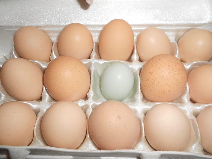 Quote: Gorgeous color! I think 1 of my ams started laying a green egg the other day then I got 2 in one day so now I have 2 laying. They are quite green though, not blue. But I like the green eggs. It's possible that these new layers are from Pams birds even though they are younger than the ameraucanas. Most EEs do mature faster than ameraucanas do.