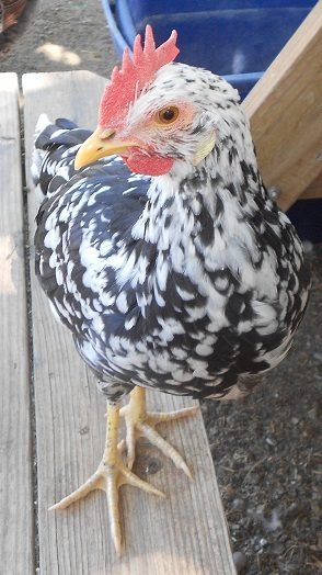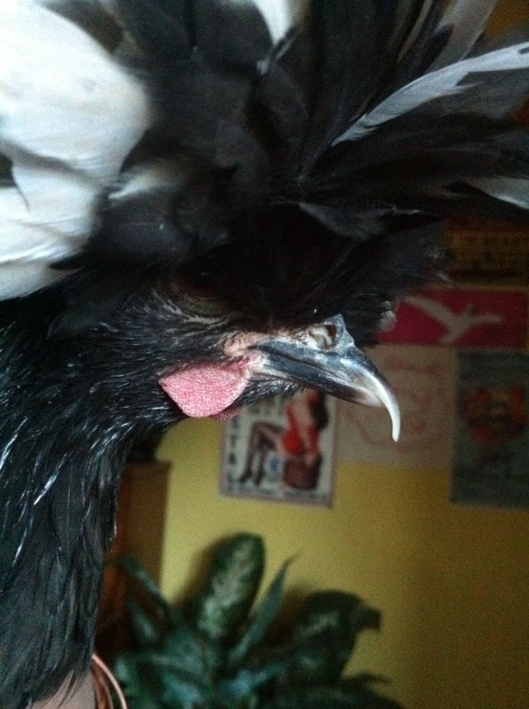 Kung Pao, who is such a sweet and friendly girl! I expected a leghorn to be a lot more flighty, but she flies onto my shoulder to ask for treats.