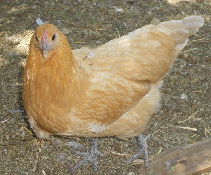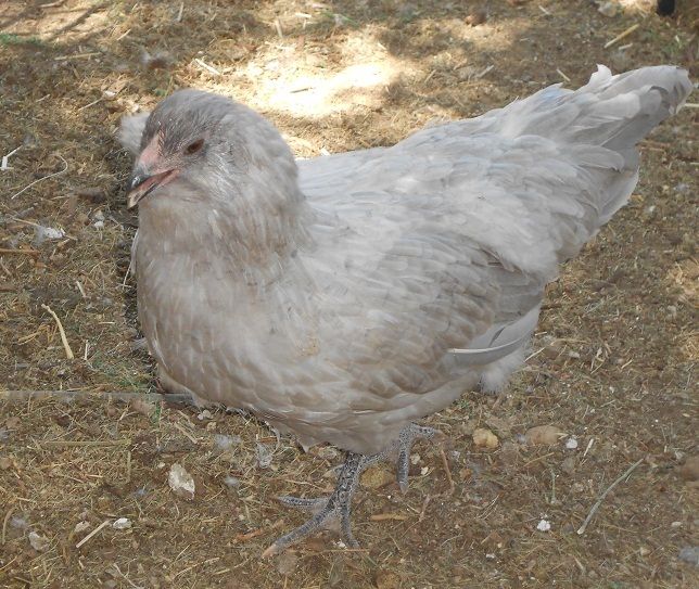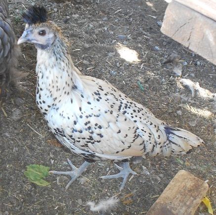 Dijon the cream brabanter. The dumbest chicken I've ever seen... she gets lost in the chicken coop, and has been going in and out of that door for 2 months!