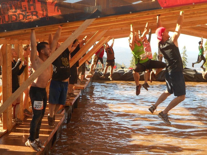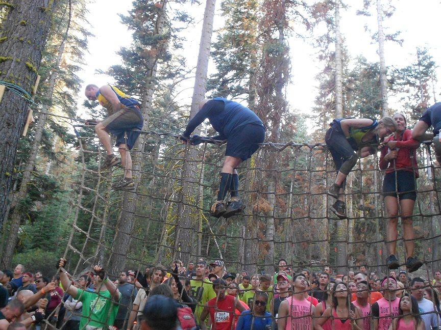 This one took teamwork. Big guys had to anchor the ropes down while others climbed. I was very glad to see the guys anchoring the ropes and letting the ladies just climb over.