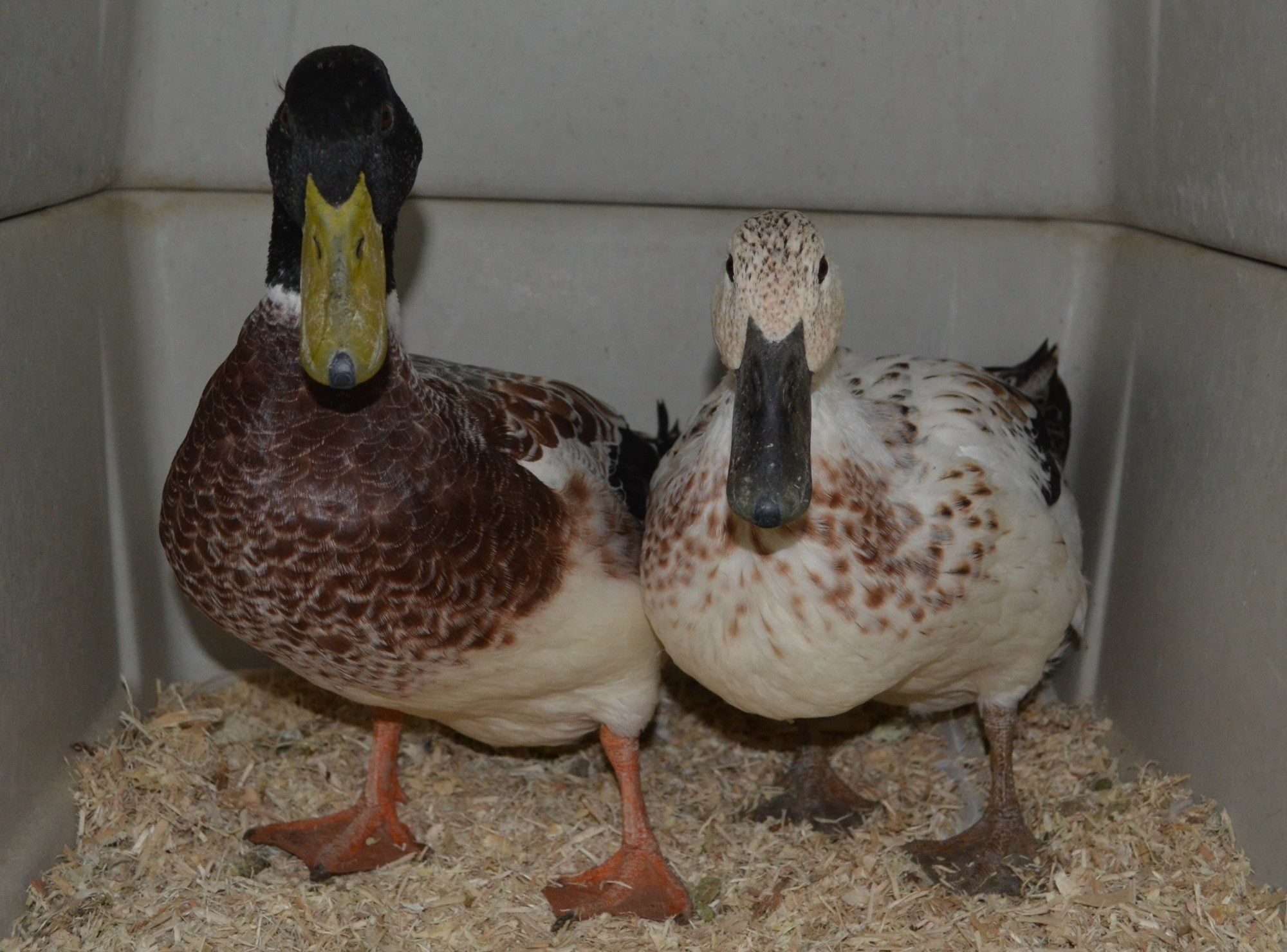 Does anyone own ducks? Are they relatively easy to care for?? A friend's coworker got ratted in by a neighbor to her HOA and so she was caught with chickens and ducks. Well, I said I'd take them in. I was going to find homes for the ducks but my sister said NO WAY and wanted me to keep them. So now I'm the proud owner of a pair of Mallards and 2 new hens, another white Leghorn and another Rhode Island Red. I can't remember the names of the hens but the ducks are Donald and Daisy, lol!